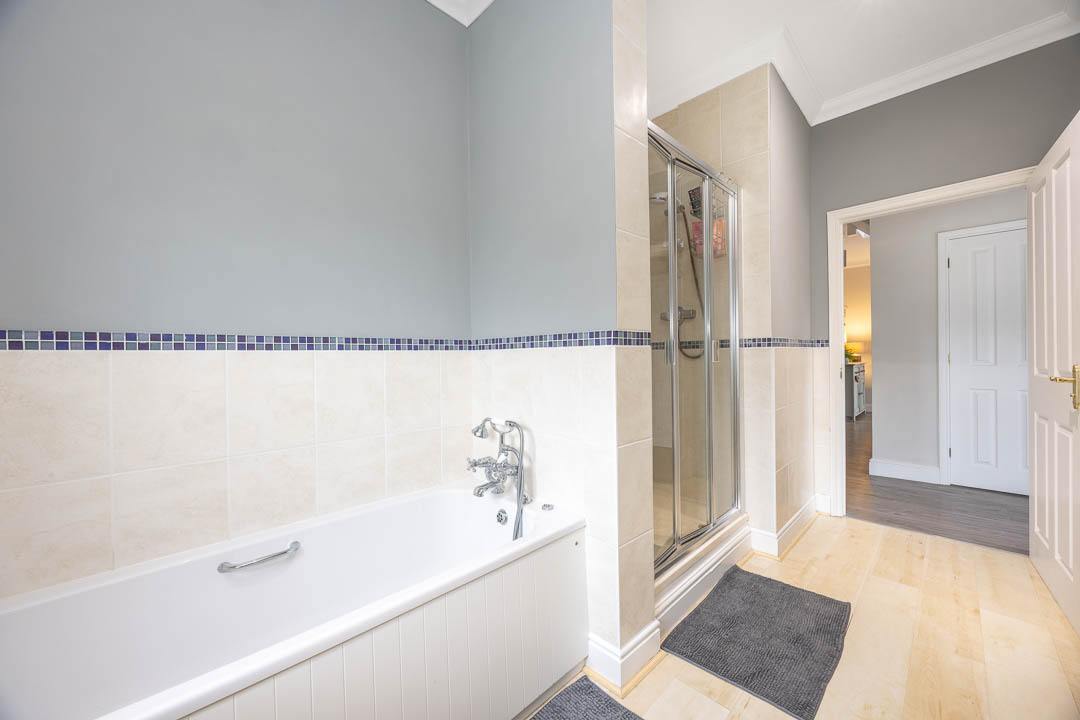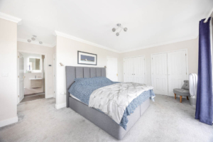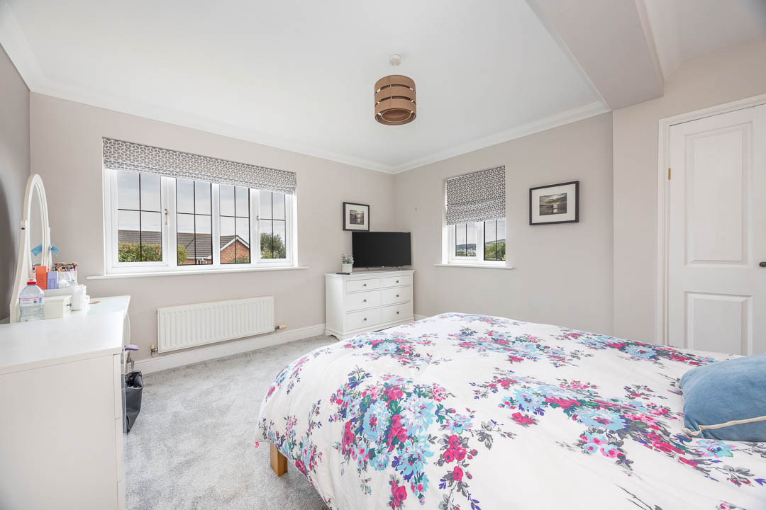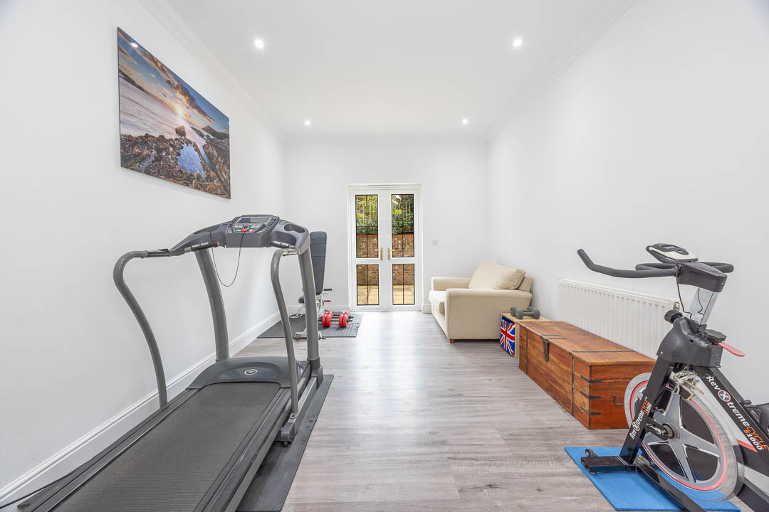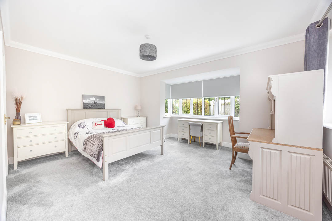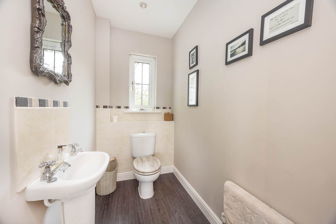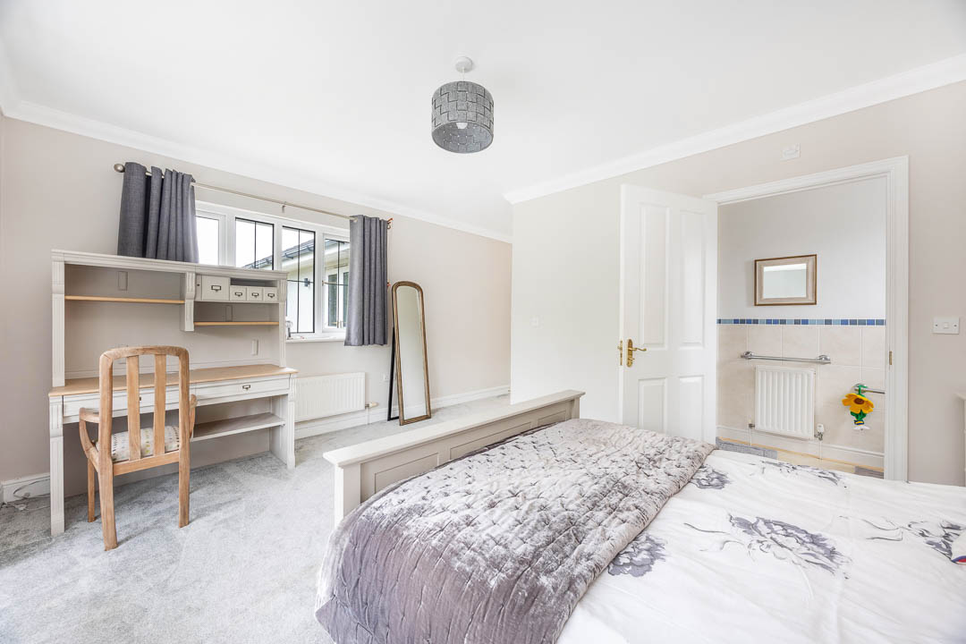 Entering the property via the newly fitted composite door which leads into the entrance porch with a door providing access to the u-shaped hallway with two built in storage cupboards. Off the hallway are Bedrooms 3, 4 & 5 all of which are good sized double bedrooms, Bedroom 4 & 5 both benefit from fitted wardrobes. Bedroom 3 is a lovely dual aspect room with plenty of natural light. In addition to the bedrooms, there is a potential 6th Bedroom, which is currently utilised as a gym, but would make a nice study/home office with French patio doors leading out to the south facing patio area. Lastly on the ground floor there is a family bathroom which has a panelled bath, walk in shower cubicle, wash hand basin and WC.