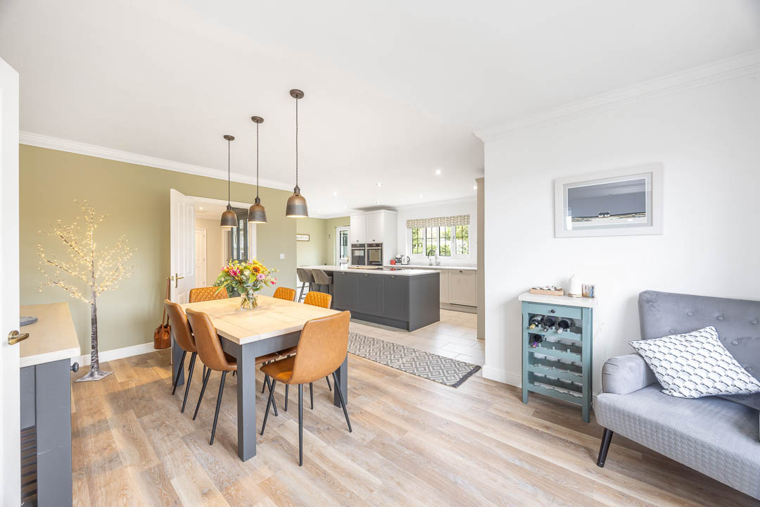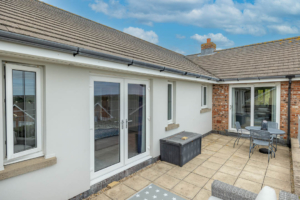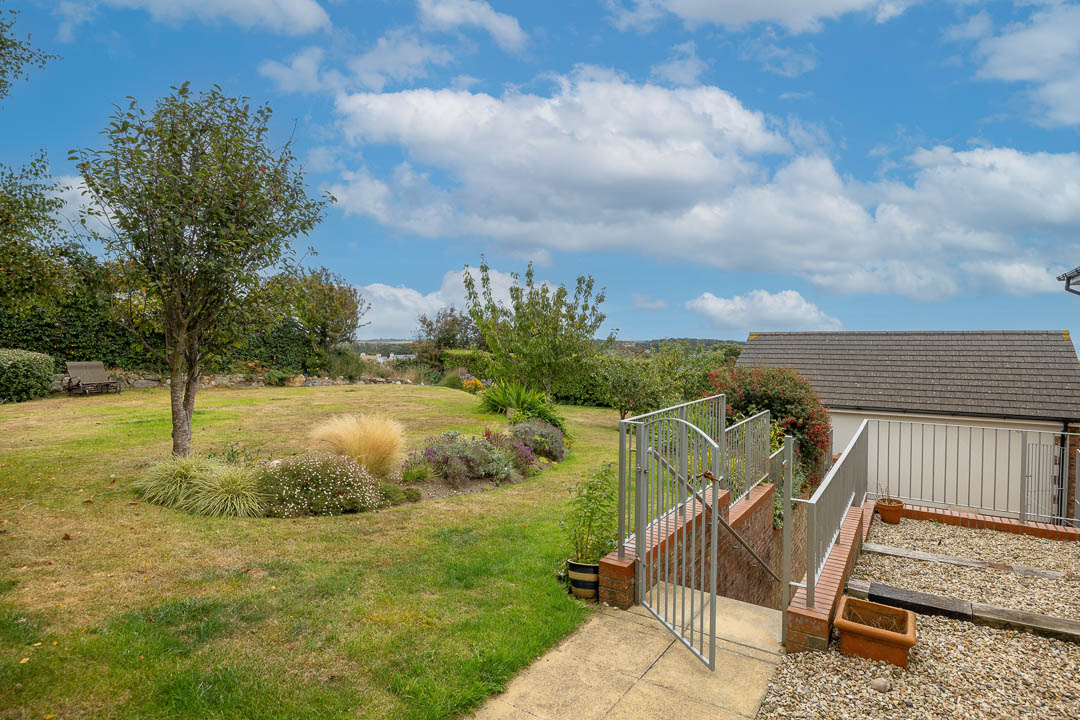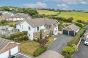 Externally, the property sits in a fantastic plot with beautifully maintained and mature gardens with fenced borders to the rear and hedgerow boarder siding onto the agricultural fields. The garden is mainly laid to law with a selection of patio and terraced areas, one directly off the kitchen and another on the lower level off the gym/Bedroom 6. Raised corner patio takes in those stunning views out to sea, raised vegetable beds and a greenhouse. There is a detached double garage with two newly fitted roller doors, to the rear of the garage there is a log store and attached covered storage area.