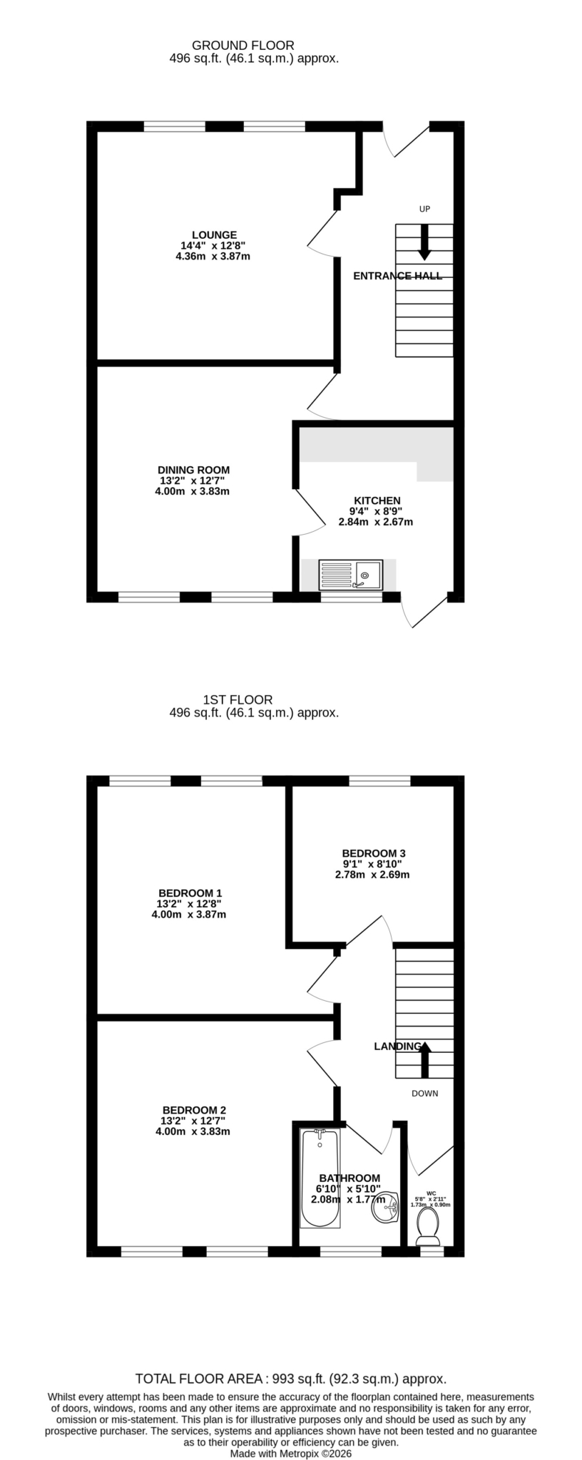 • 3 Bedrooms, 1 Bathroom and Separate WC