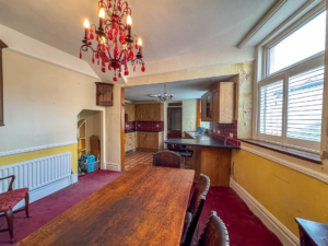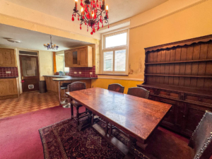 To the front of the property there is a walled garden with a gate leading to the tiled path and steps up to the first floor. Upon entering the property there is an entrance porch leading though to the hallway with stairs to the first floor. At the front of the property there is a bay fronted lounge with a feature wood burner. The dining room is situated to the rear with an opening into the kitchen, which is fitted with a range of wall and base units. Off the kitchen is access into the rear porch which provides access into the rear yard.