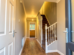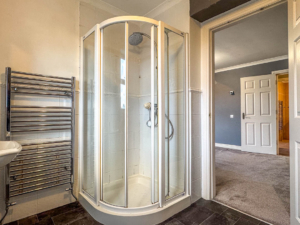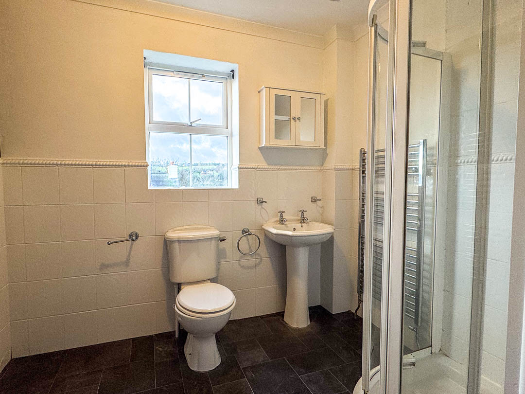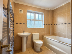 On the first floor there is a good size landing with double doors into a large airing cupboard. The master bedroom is situated to the front of the house with a range of fitted wardrobes, uPVC double glazed window with stunning views up towards Windy Corner and an en-suite shower room fitted with a corner shower cubicle, wash hand basin and WC. Bedroom 2 and 3 equally both comfortable, double bedrooms, bedroom 2 is situated to the rear of the house and bedroom 3 to the front. in addition to the bedrooms is the modern family bathroom fitted with a double ended panelled bath, wash hand basin and WC.