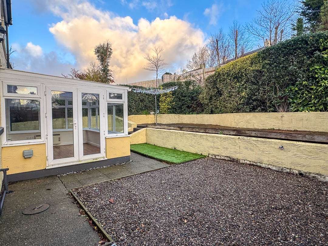 Externally, to the front of the property is a fenced, good sized lawned garden to the front of the property which is south-west facing and attracts evening sun to the rear. To the rear there is a raised decking area with a mature hedge border, side gate giving access to the front of the property and a gravelled patio area alongside some artificial grass.
