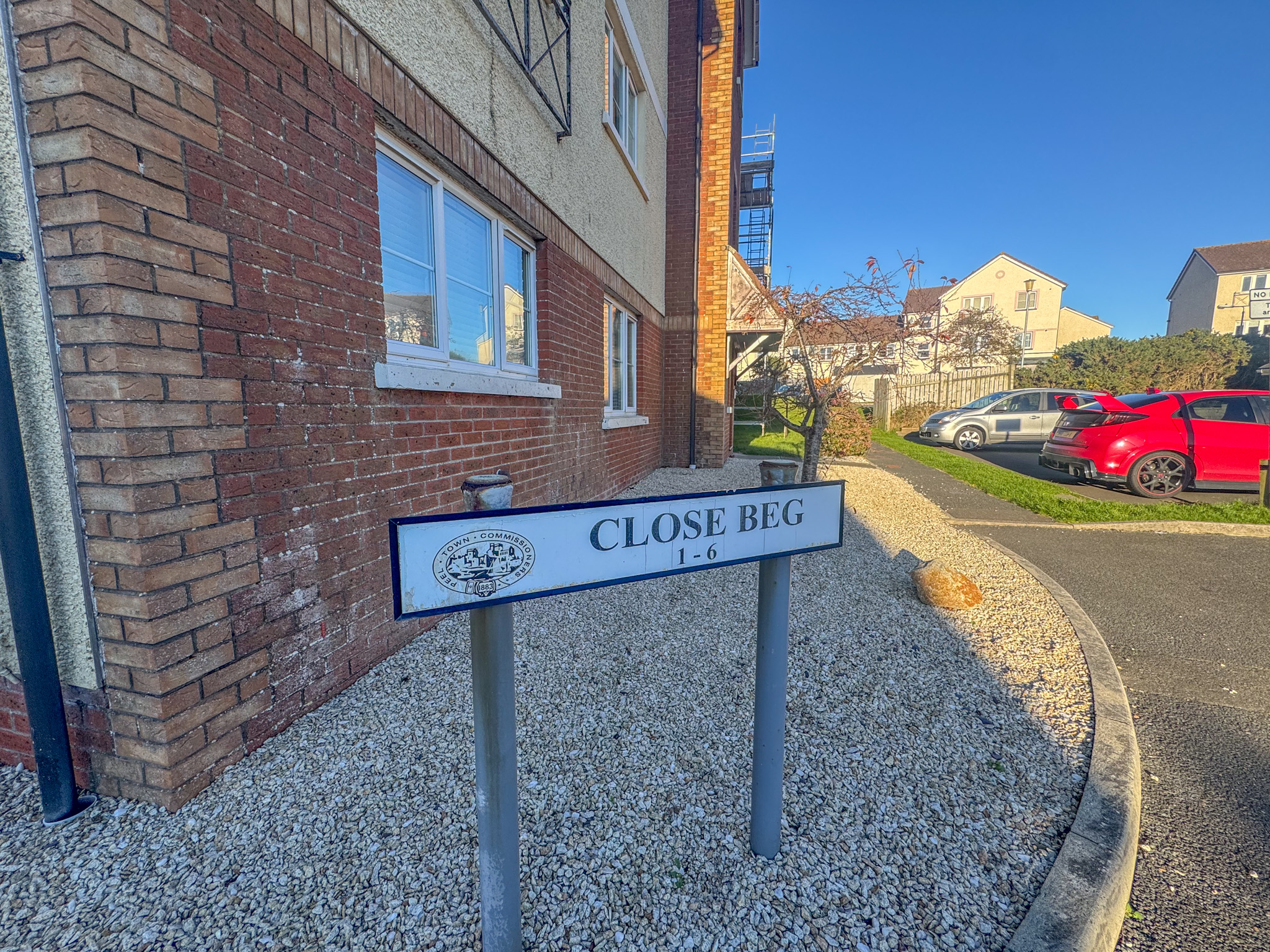 Black Grace Cowley are delighted to offer 2 Close Beg to the market, a well presented ground floor apartment situated in a popular residential location, within close proximity to local amenities, schools, shops, Barbary West Coast and West Coast Fitness Gym. A covered porch at the front of the building with an entry system opens into the communal entrance hall where the post boxes are situated and staircase to the upper floors. No. 2 is situated on the right-hand side and is clearly numbered. Entering the apartment via the front door, which leads into a welcoming entrance hall with two built-in storage cupboards. Off the hall is a spacious 26ft open-plan Lounge, Kitchen and Dining Room which provides a bright and airy living space with double doors leading into the garden. The kitchen is fitted with a range of base and wall units with contrasting work surfaces, built in oven and hob, space for a freestanding fridge freezer and integrated dishwasher and washing machine. There are two generously sized double bedrooms one with built-in wardrobes. The modern bathroom is fitted with a bath shower over, wash hand basin, WC and storage unit. To the rear is a generous sunny West-facing garden with pebbled patio area and large storage shed to the left, the garden to the right is laid to lawn with a border of mature shrubs and plants. The allocated parking space is through the back gate directly to the right.