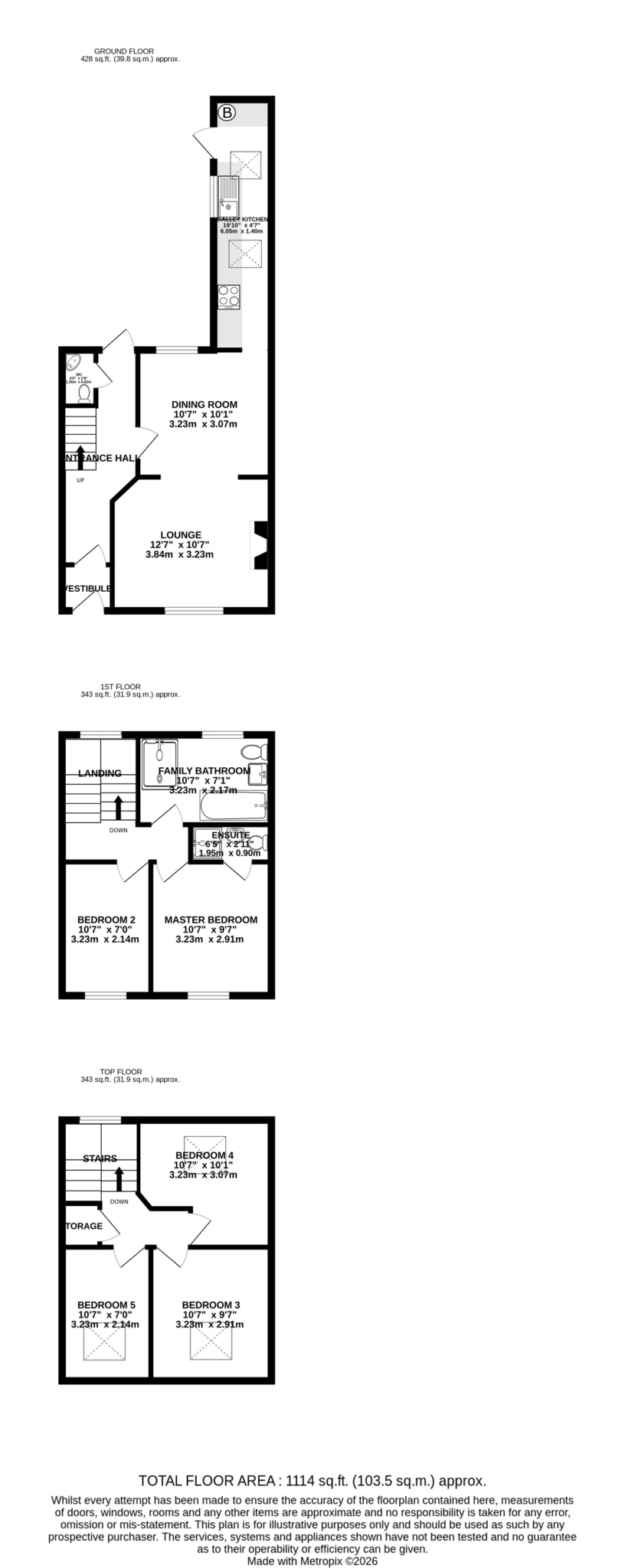 On the 1st floor, there is a master bedroom which is a good sized double bedroom, situated to the front of the house and complimented by an en-suite shower room fitted with a shower cubicle, wash hand basin and WC. Bedroom 2 also situated to the front of the house is off the 1st floor landing. Lastly, there is a large family bathroom which has a walk-in shower cubicle, panelled bath, wash hand basin, WC and frosted double glazed window to rear aspect. On the second floor there are three further bedrooms, Bedroom 4 is an excellent sized double, Bedroom 5 also a double and Bedroom 6 a good size single bedroom. All three have the benefit of double glazed Velux windows.