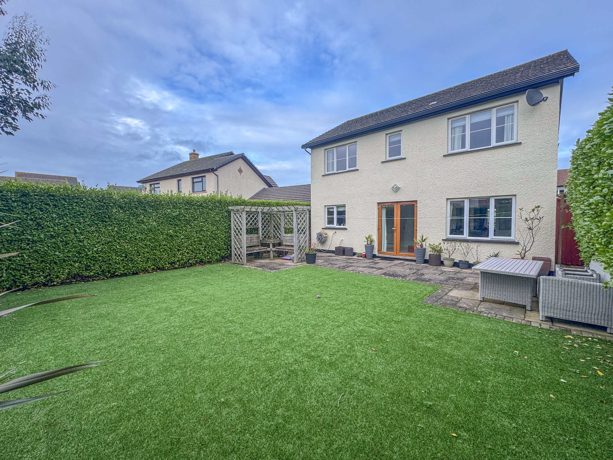 Black Grace Cowley are delighted to offer 4 Clover Avenue to the market, a well presented detached house situated on the popular residential development, Reayrt Ny Keylley in Peel. Conveniently situated and within walking distance of the school, shops, gym, dentist, swimming pool, local amenities and only a short drive to Douglas, Ramsey and the South of the Island. Upon entering the entrance hall, there is a modern cloakroom WC and stairs to the first floor. A door to the left leads into the spacious lounge with feature fireplace and double doors into the open-plan kitchen diner located at the rear of the property with modern base, wall and drawer units and contrasting worktops, walk-in larder, integrated oven, hob and dishwasher. Off the kitchen/diner double doors lead out onto the patio and rear garden. The utility room accessed off the kitchen, is fitted with matching base units, space and plumbing for laundry appliances, door access to the side of the house and integrated garage. The first floor comprises of a master bedroom with fitted wardrobes and modern en-suite shower room, three further bedrooms all fitted with built in wardrobes, and a modern family bathroom.