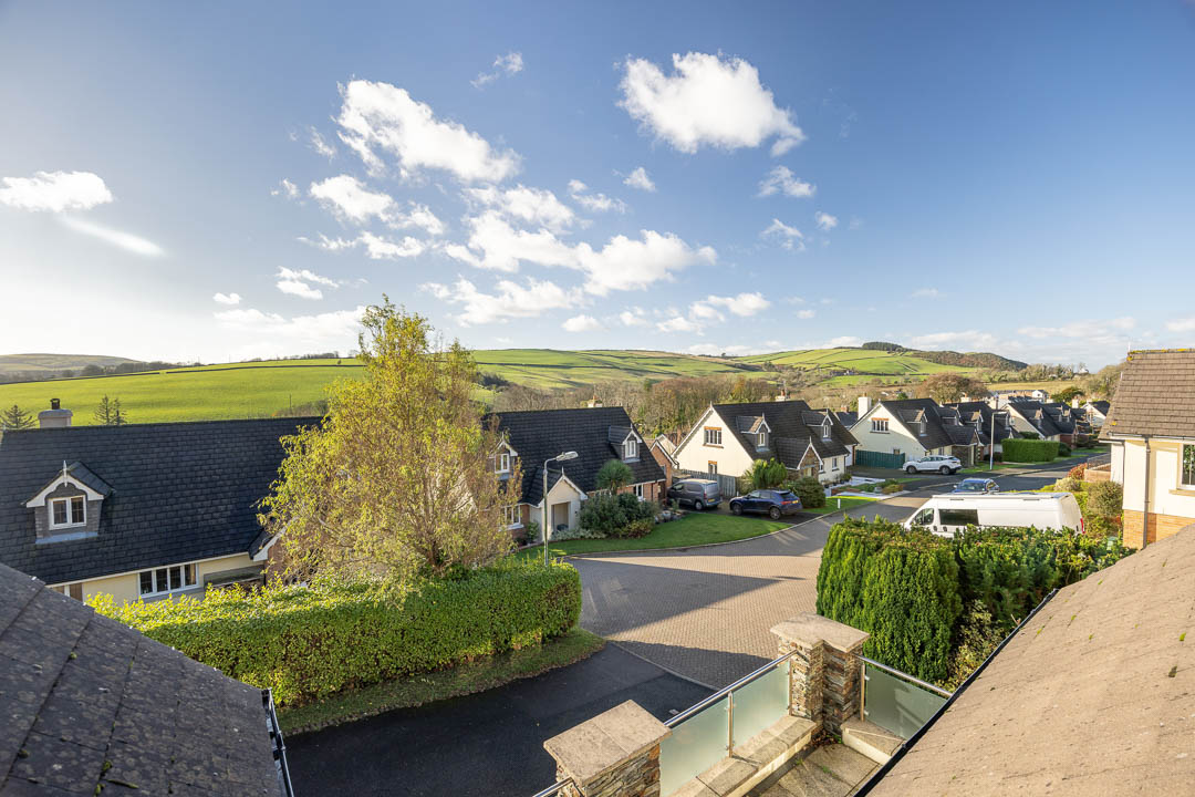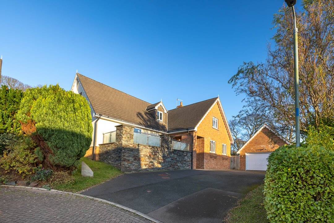 Black Grace Cowley are delighted to offer 6 Kermode Road to the market. This stunning 3,000 sq.ft modern executive home sits in an elevated position at the end of a highly sought after cul-de-sac location offering space and privacy. The property sits in a plot that extends to approximately 0.25 of an acre. To the front of the property there is a tarmac drive offering parking for a minimum of 4-5 vehicles. From the driveway there is a covered porch with steps leading up to the entrance.
