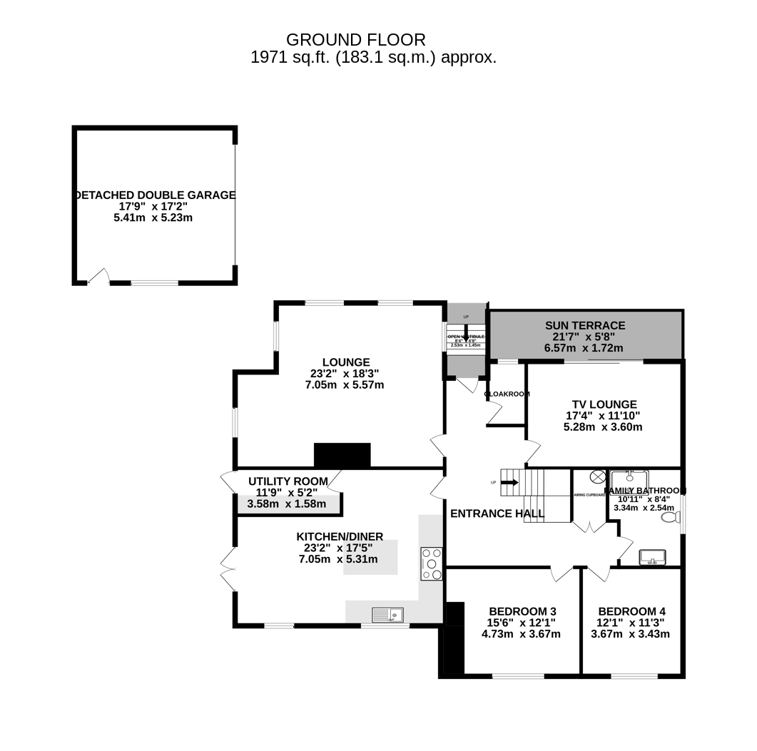 Outside there is a detached double garage with a large roller door to the front and side door for access, which leads to the patio areas, a timber gate also provides access to the off street parking. The garden extends to approx. 0.25 acres, which are mainly laid to lawn with elevated areas that will attract the sun until late evening through the summer months.