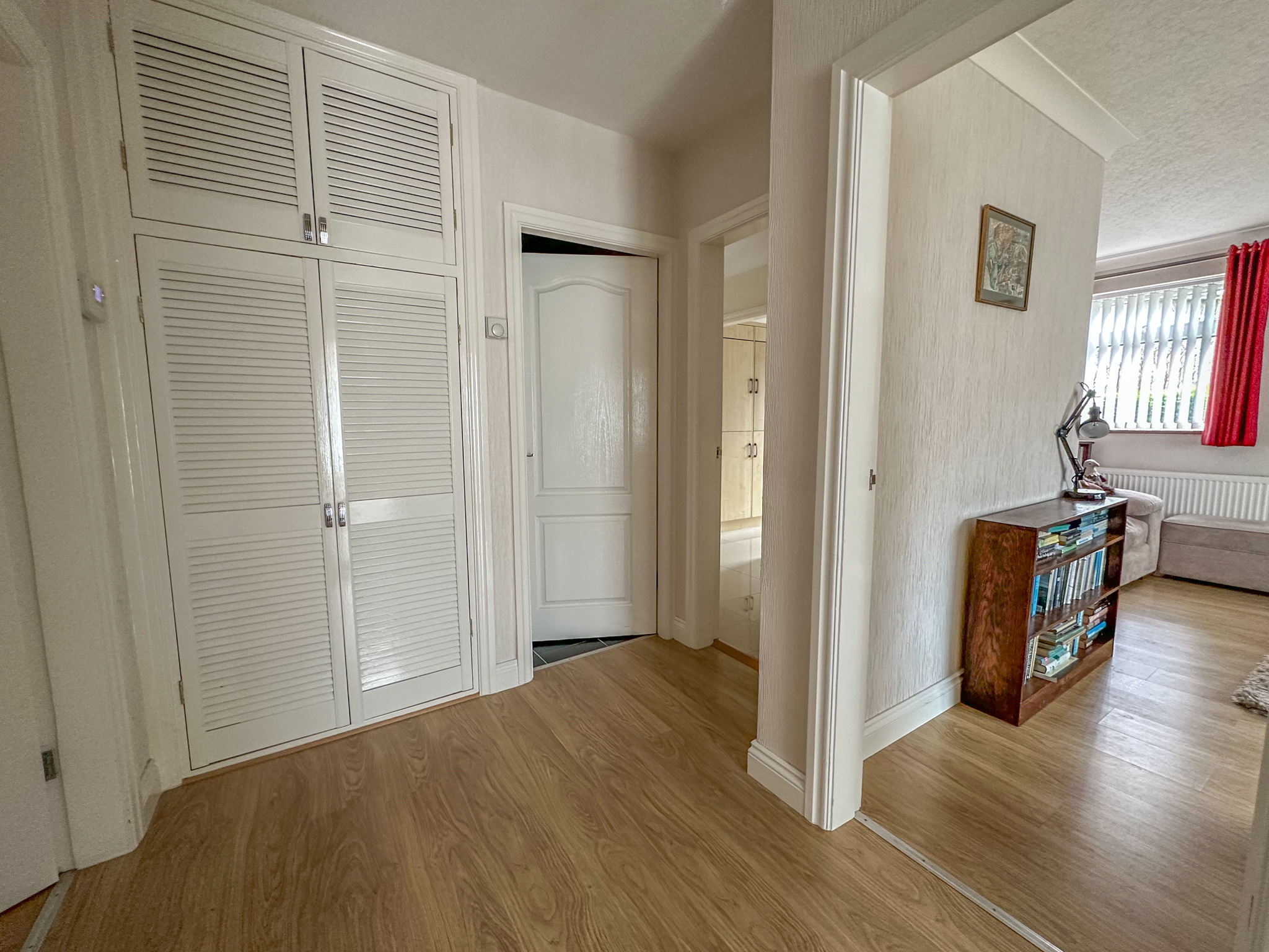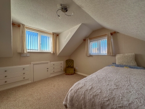 Entering via the porch into the entrance hallway with cloakroom WC and storage cupboard ideal for coats, boots and shoes. A generous sunny lounge with dual aspect and bay windows is situated off the hallway to the right with marble effect fireplace and electric fire. The kitchen is fitted with a comprehensive range of base and wall units with contrasting worktops, tiled splashback and integrated appliances with uPVC French doors leading to the rear garden. The separate utility room with side access door offers a range of base and wall units and plumbing for laundry appliances. Bedroom 4 is accessed off the hallway and is currently used as a snug/office. The large master bedroom is situated off the hallway at the rear of the property with a good range of built-in wardrobes, a modern En-suite with underfloor heating, comprising of a bath, separate shower, vanity sink, heated towel rail and WC. Off the master bedroom is a large studio that could be used as a nursery, office, craft room, gym or yoga room. Upstairs are two generous double bedrooms both with Dormer windows and views towards Peel Hill, each has built in wardrobes and under eaves storage. On the landing is a modern bathroom with underfloor heating, featuring a bath and shower over, vanity sink and WC.