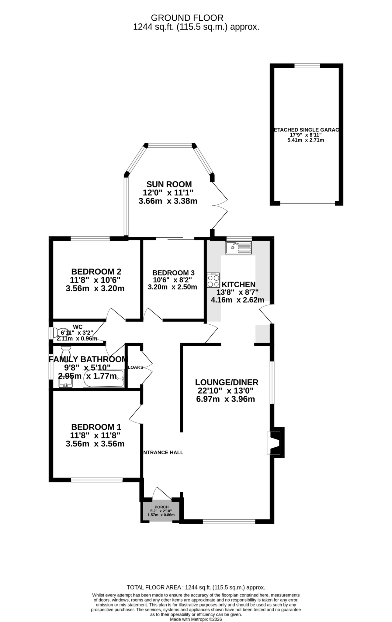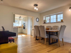 On entering the entrance hall, there is a large fitted double cloaks cupboard to one wall, and the entrance hall then opens into the lounge diner which has dual aspect uPVC double glazed windows and hardwood floors through the hallway and lounge space. A feature log burner and an opening into the modern fitted kitchen. The kitchen was recently installed with a range of shaker style wall and base units with black handles, solid wood worktops, integrated appliances include a dishwasher, fridge freezer, oven, microwave and ceramic hob with overhead extractor. Double glazed window looking onto the rear garden and a uPVC door giving access out to the driveway. Access to the kitchen can also be found from the entrance hall. Off the entrance hall there are 3 bedrooms, the master bedroom is situated to the front of the property and is a large double bedroom with a uPVC double glazed picture window and a bank fitted wardrobes to one wall, Bedroom 2 is situated to the rear of the property and is south facing with a large picture window overlooking the rear garden. Bedroom 3, currently set up as a study, is an excellent sized 3rd bedroom with built in storage to one corner. Off bedroom 3 there is a set of sliding patio doors that lead out to the sunroom, which has a solid roof, uPVC double glazed to all sides and a set of French patio doors that give access out to the rear garden. Lastly from the entrance hall, is a door into the family bathroom suite, which has been fully modernised by the current vendors. Fitted with a bath with rain shower shower attachment over, wash hand basin and WC, built-in shelving and a patterned glass double glazed window to the side aspect, separate from the family bathroom, there is an additional guest cloak room, which also has a pattern glass, double glazed window to side aspect.