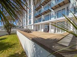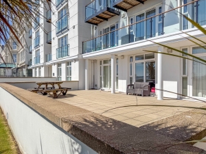 Black Grace Cowley are delighted to offer this ground floor purpose built apartment within the popular Spectrum Apartments complex on Central Promenade. The apartment is accessed through the East entrance of the building. Good size entrance hall, open plan Kitchen with modern units and integrated appliances. Spacious living area with sliding patio doors onto the private terrace. Master Bedroom with fitted wardrobes and en suite Shower Room. Second Bedroom also has fitted wardrobes and a Jack and Jill Shower Room. uPVC Double Glazing throughout and Electric storage heaters. Allocated parking space and store room. The property is offered for sale with no onward chain.