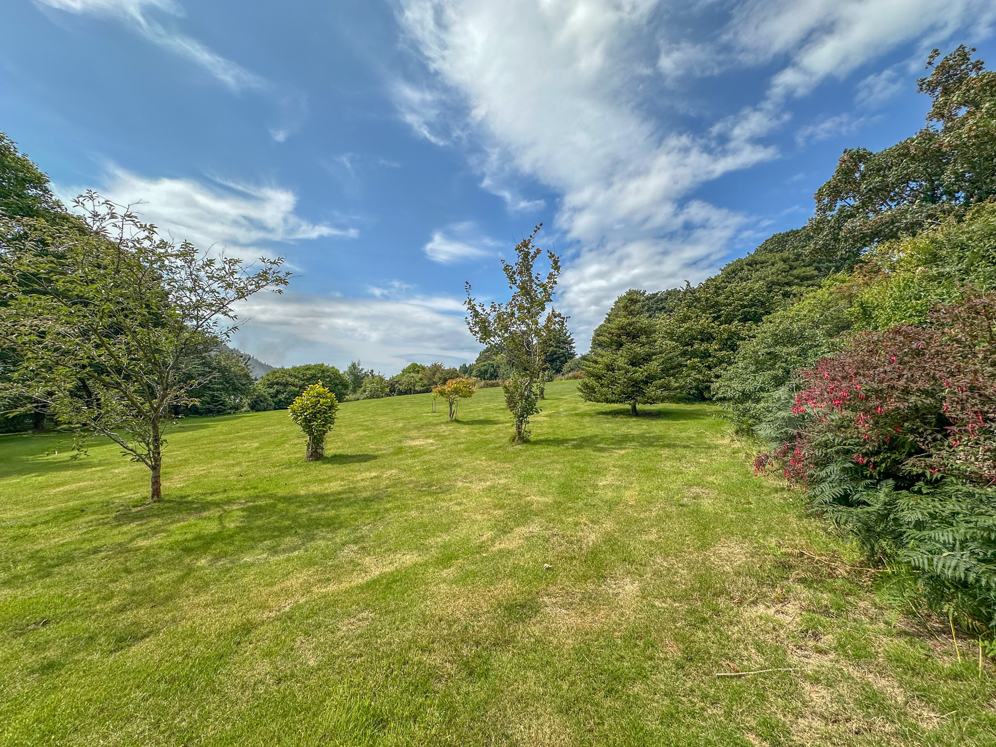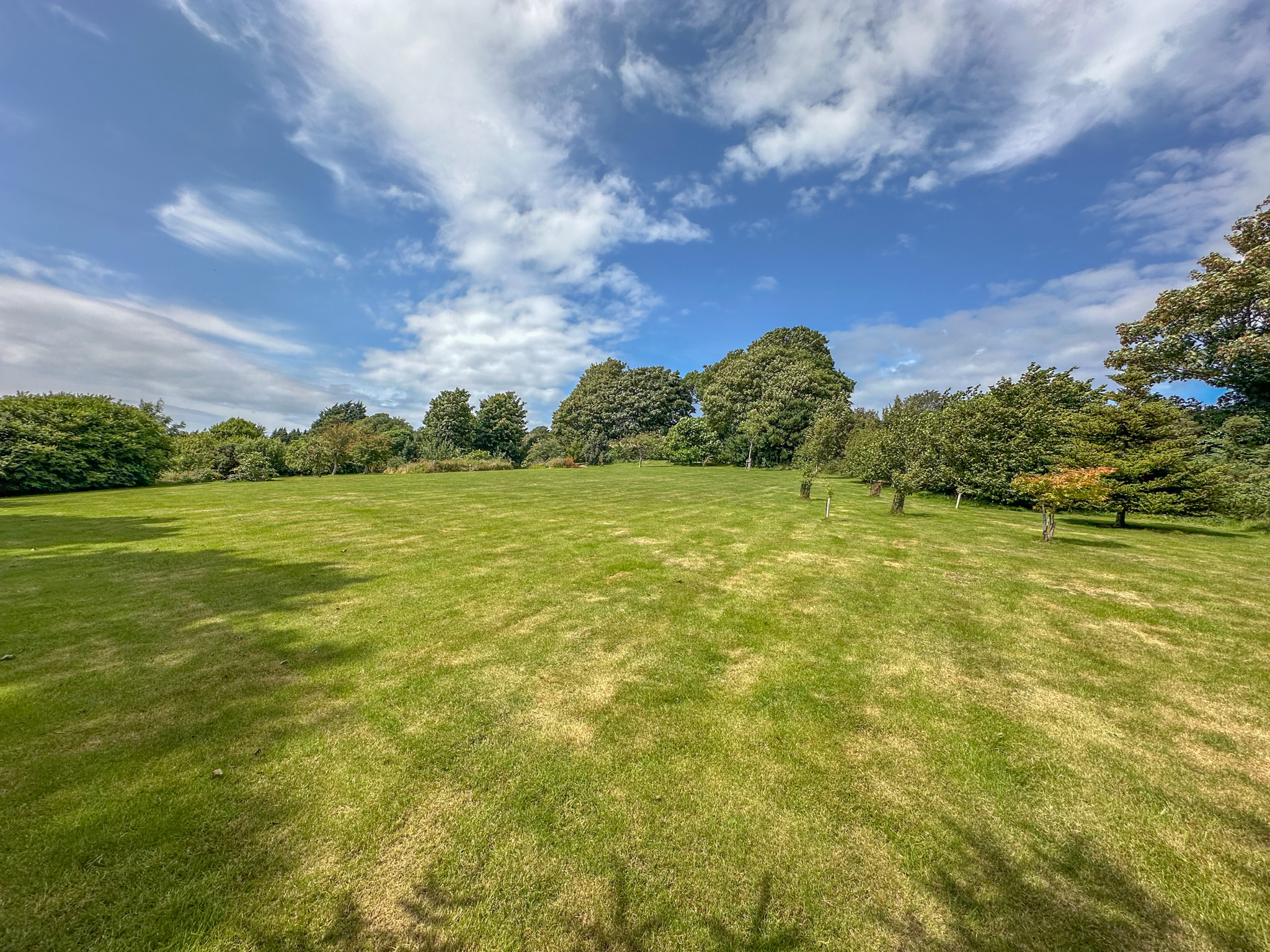The property sits within 2.5 acres of well-tended, lawned gardens with several excellent mature fruit trees, a selection of interesting and ornamental trees, for more details please contact our office, with plenty of space for a garden allotment. The property is approached via a sweeping tarmac driveway which provides access to the generous parking at the rear. There is a stone built six car garage, two car garage, workshop and machine store. Planning permission for a luxury 4500sq.ft bungalow within the grounds with a southerly view of surrounding hills, perfect for multi-generational living.