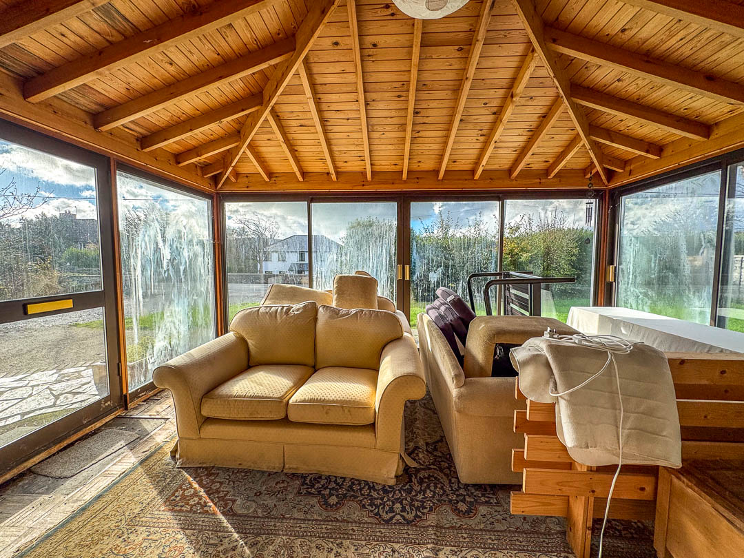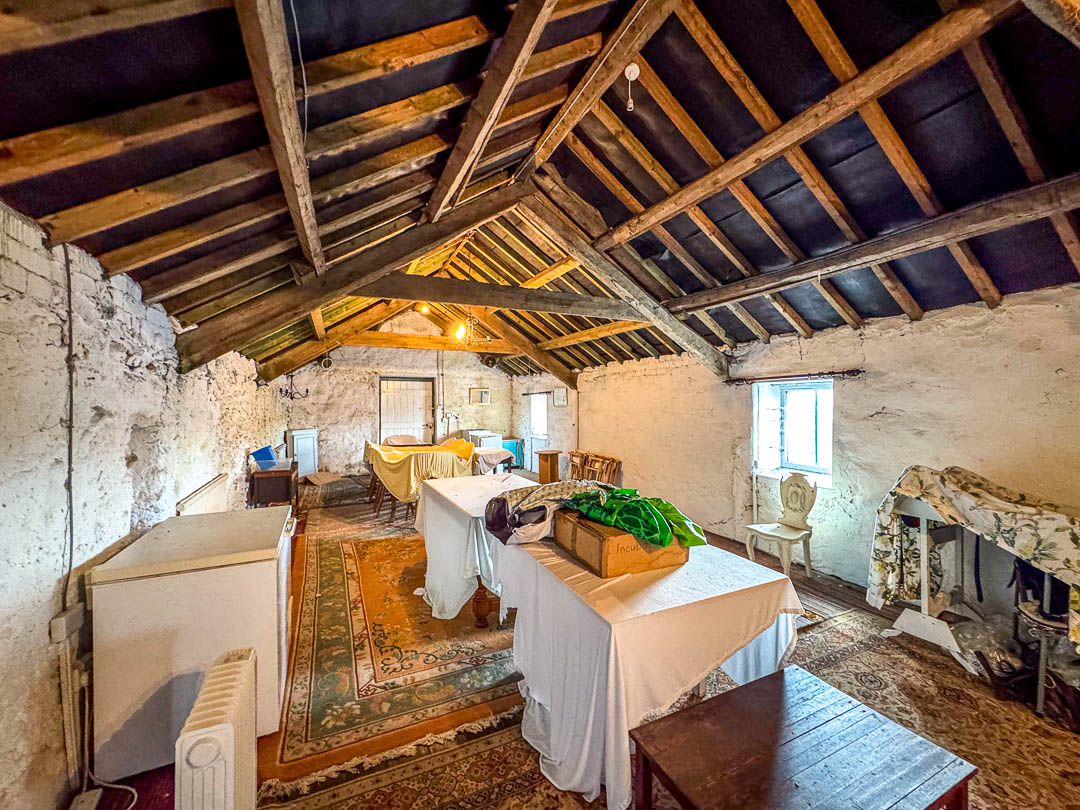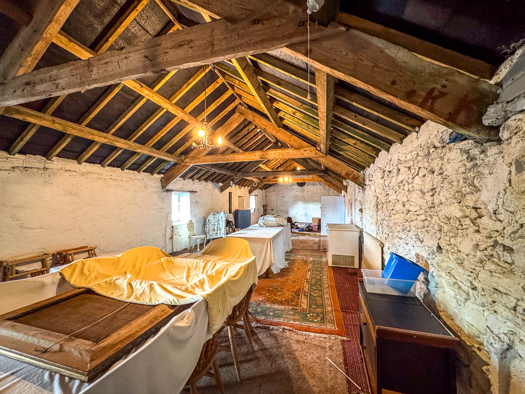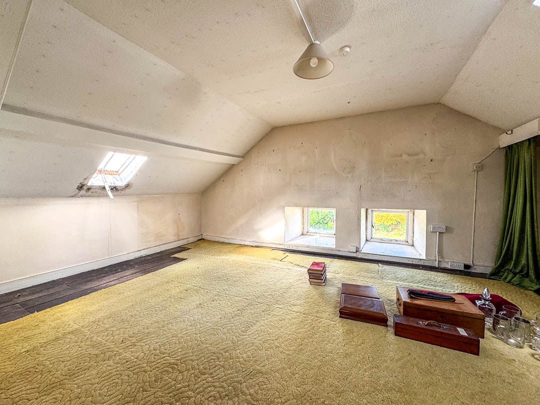 Above the integral double garage and stables is a generous former hayloft, accessible via a dedicated staircase from the utility room and also externally from the gable end — offering excellent scope for conversion, subject to any necessary consents.