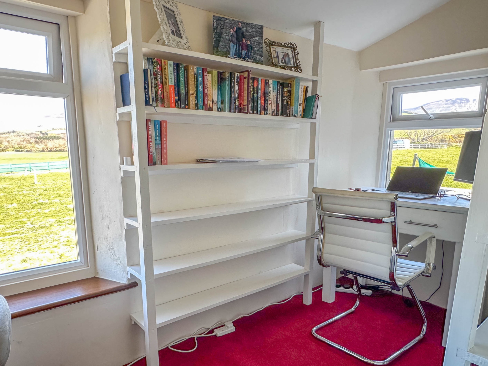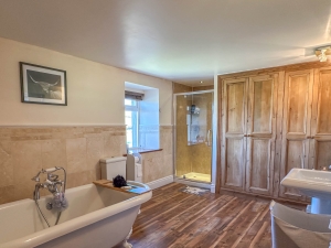 Upstairs to the half landing is a study hidden behind two beautiful stripped pine doors with fabulous views from the dual aspect windows. The master bedroom on the first floor is situated at the front of house and with dual aspect windows has stunning views along the Western coastline. Original beams, feature fireplace, recessed cupboards and fitted oak wardrobes, a spacious en-suite with claw foot free standing bath, sink, WC and heated towel rail make this master bedroom feel like a haven in which to relax and unwind. There is a large family bathroom with claw foot bath, separate shower, sink, WC, heated towel rails and plenty of storage. There are two further bedrooms on the first floor, bedroom 2 has fitted oak wardrobes and countryside views towards Peel Castle, bedroom 3 has a feature fireplace with stone wall detailing and fitted wardrobes. On the second floor, in the roof space, are two further double bedrooms with exposed beams and under eaves storage. There is a separate WC and sink between the two attic bedrooms.
