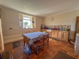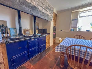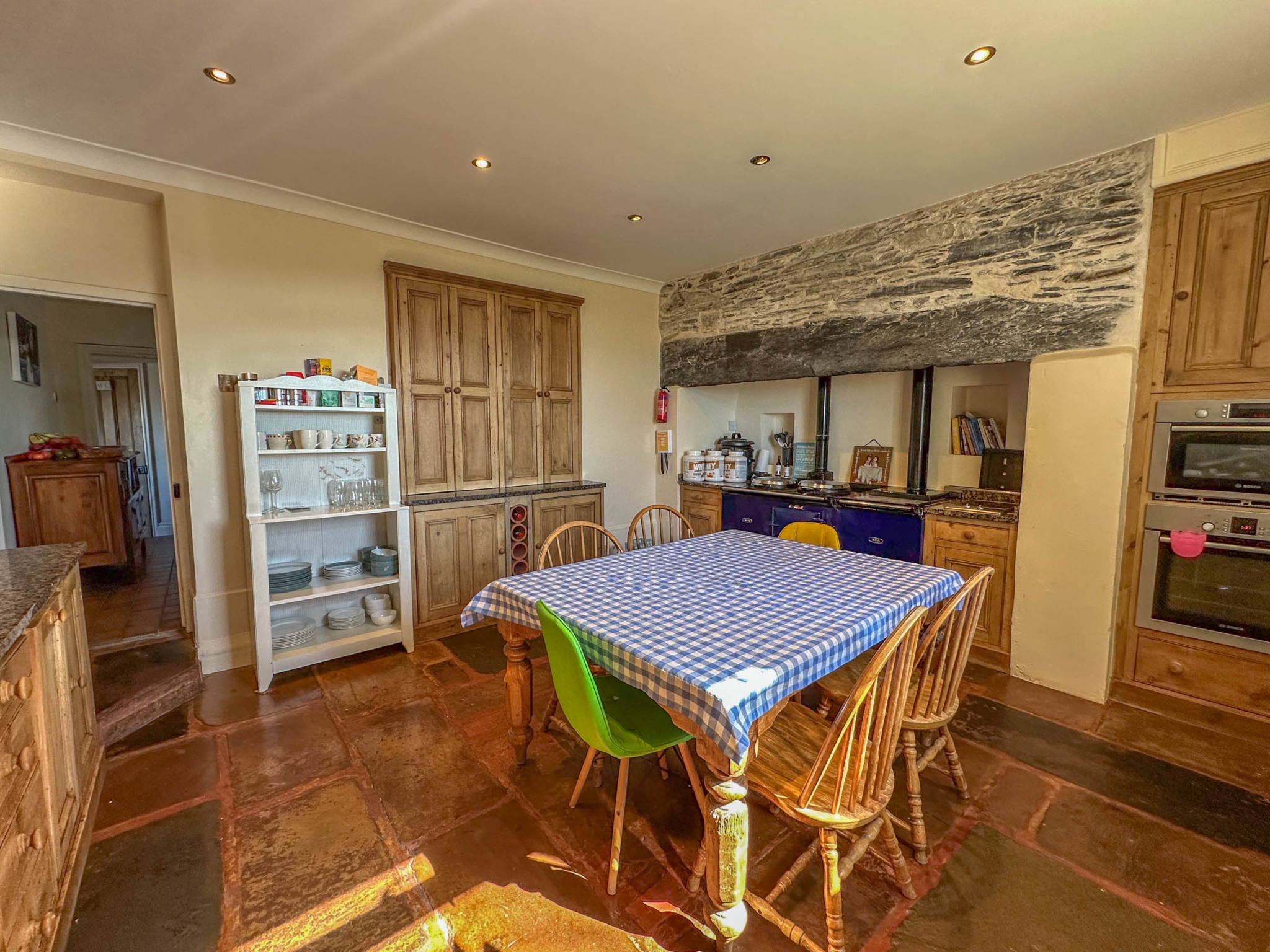 Sat within a walled, gated garden the flag stone path leads to the uPVC wood effect door into the porch with a brick detailed arch, tiled flooring and shelving, a timber door leads into the spacious inner hallway. The tiled flooring continues into the hallway that leads to the lounge on the left, the dining room, kitchen and sunroom are on the right, and stairs to the basement and upper floors. The lounge has stripped wood flooring, dual aspect windows, feature fireplace with log burning stove, exposed stone chimney breasts and original built-in storage cupboards. Through a door and down some steps to the basement which consists of two rooms one used as a utility room with plumbing for laundry appliances and the second room provides additional storage. Through a door on the left you step down into the heart of the home, a traditional farmhouse breakfast kitchen, with a polished flag stone floor, a range of bespoke oak base, wall and drawer units with an impressive double AGA with twin hotplates, double oven, warming oven, cookware storage cupboard and a separate electric hob. There is a separate electric oven and microwave, Belfast sink and granite work surfaces complete this lovely kitchen. Off the kitchen is the dining room, a door to the left leads to the cloakroom WC and rear porch, ideal for coats and muddy boots, Belfast sink and door access to the rear garden. Through a door from the dining room is the light and airy sunroom with feature stone bench, flag stone floor that is flooded with light from the Velux windows in the roof. There is a door to the rear garden and patio doors to the sunken, private patio and BBQ area that is perfect for entertaining friends and family.