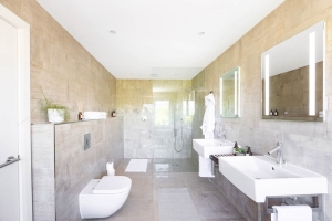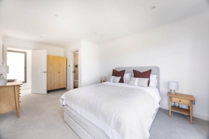 Spread across two levels, the property features four generously sized bedrooms, including an indulgent master suite with private balcony access, a walk-in dressing room, and a luxury four-piece en-suite bathroom. Further bedrooms also benefit from en-suites, sea views, and access to private balconies, offering the flexibility of multi-generational living, separated guest accommodation if required, or dedicated work-from-home spaces.