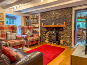 On the first floor is a good size landing. Bedrooms 1 and 2, are situated to the front of the cottage, bedroom 1 has four height pitched ceilings with exposed beams providing plenty of natural light. Bedroom 2 has two uPVC double glazed windows to front aspect and a large alcove area currently used as a study space. Bedroom 3 is situated to the rear of the cottage, and the largest of the three bedrooms with a double glazed picture window looking onto Burnside’s beautifully maintained garden. The family bathroom is fitted with a panelled bath with shower over, built in airing cupboard, wash hand basin and dual aspect windows, giving plenty of natural light. Lastly, there is a separate WC off of the first floor landing.