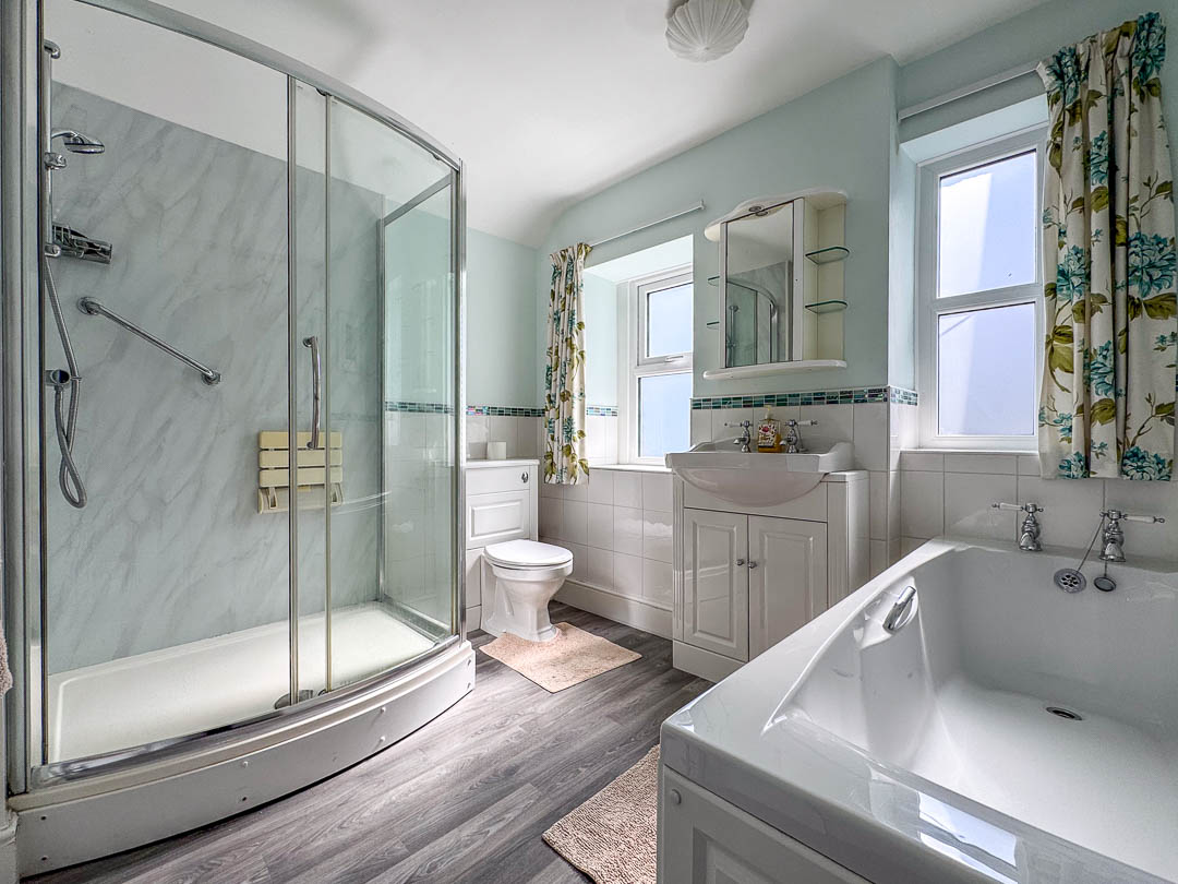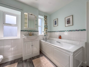 On the first floor are two generous double bedrooms, bedroom one is situated to the front and is a superb size. The family bathroom is accessed off the half landing and fitted with a modern four piece suite comprising shower cubicle, bath, wash hand basin with vanity storage below and WC. On the second floor are bedrooms three and four, both good size bedrooms enjoying sea views. In addition to the bedrooms is a bathroom, fitted with bath, wash hand basin and WC.