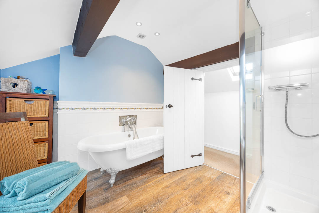 In addition to the principal dwelling, there is an extended detached two-bedroom cottage within the grounds of Croit Rance, this property currently has a four-star self-catering rating. It’s a perfect holiday cottage or secondary dwelling for multi-generational living. The entrance porch leads you into the dining room and through to the living space. Also off the dining room is access into a country style kitchen. Beamed ceilings throughout the ground floor, offering plenty of character. Off the kitchen is a utility/downstairs WC, which also acts as a boot room. From the dining room is an open staircase leading you up to the first floor with two double bedrooms, off the larger of the two bedrooms is a private sun terrace. In addition to this, there is a family bathroom fitted with a bath, shower, wash hand basin and WC.