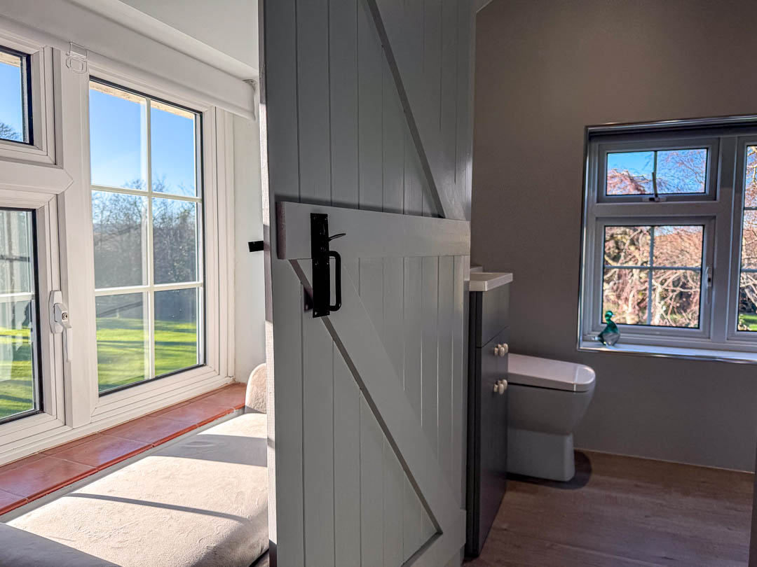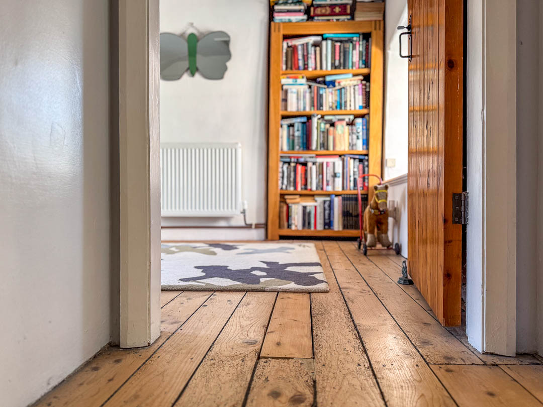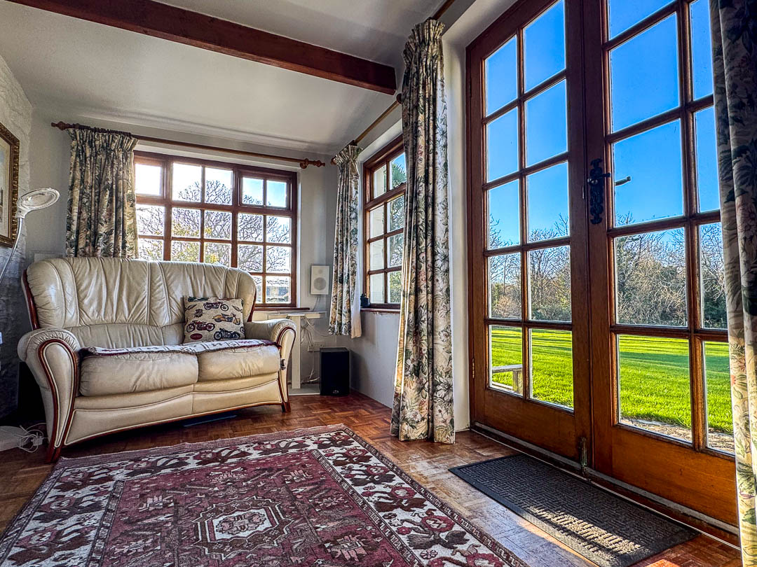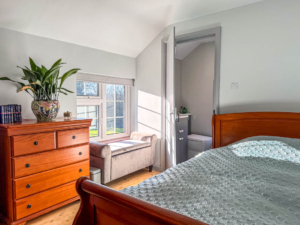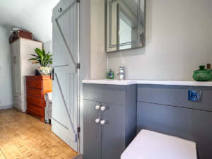 On the first floor there is a bright landing area with stripped original floorboards. Bedroom 1, situated to the rear of the cottage, is a good sized double bedroom with a double glazed window which enjoys views over the grounds. There is a newly modernised en-suite shower room fitted with a walk in shower cubicle, wash hand basin with vanity unit below and WC. Bedroom 3/Dressing Room is accessed off the landing and is a large dual aspect room with built in storage. This room is currently used as a walkthrough dressing room, which leads into Bedroom 2, but could easily be adapted to create a third bedroom. Lastly, Bedroom 2, situated at the far end of the cottage is a triple aspect bedroom with plenty of natural light. Throughout the first floor of the main cottage, there is original wood flooring and additional period features.