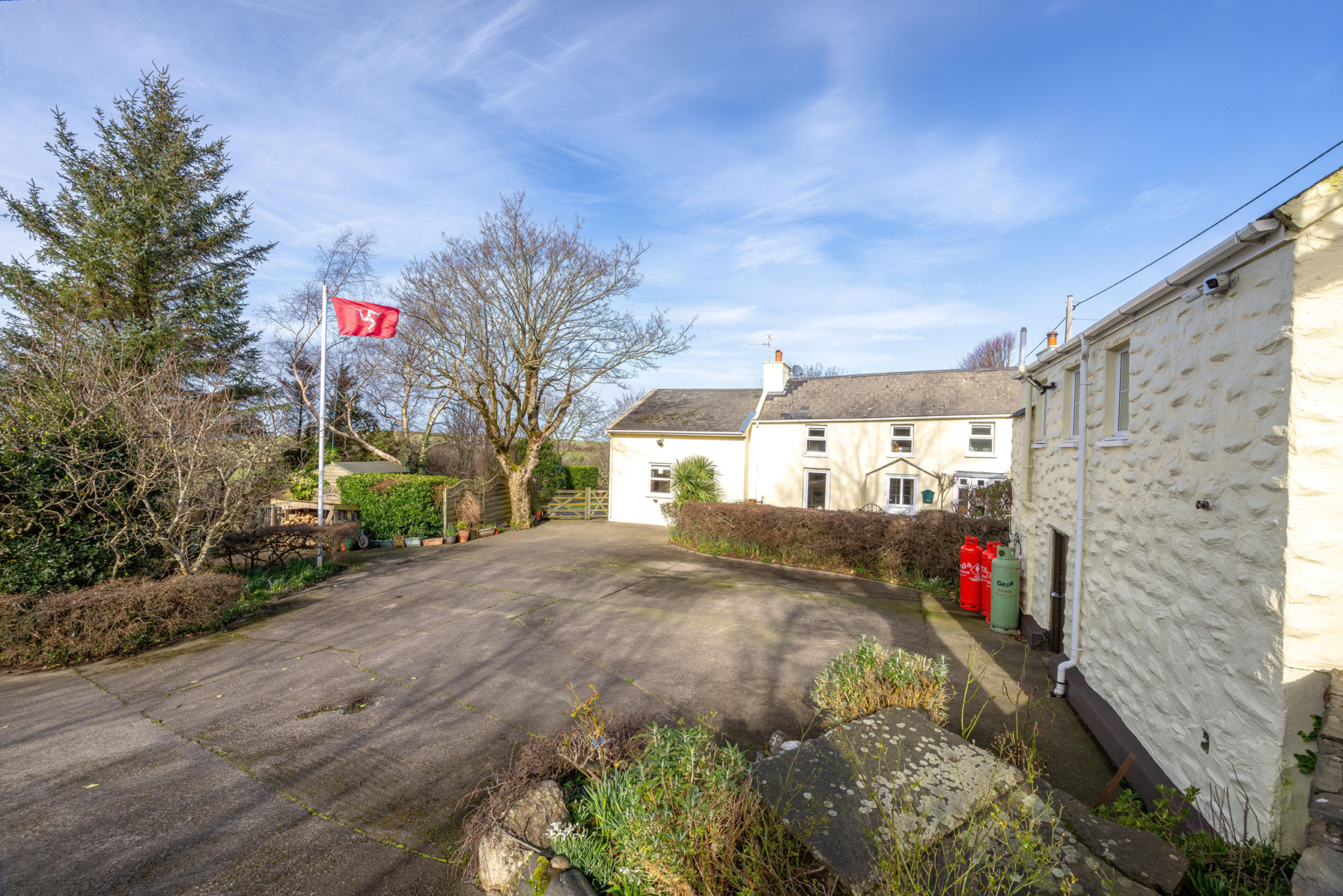 Black Grace Cowley are delighted to bring to the market Fuchsia Cottage, a characterful former Manx cottage that has been tastefully renovated, loved and cared for and been a happy family home for over 50 years. Located at Barregarrow, Kirk Michael on the TT course with uninterrupted sea views, surrounded by countryside and sitting in a very private and secluded plot this cottage is a true gem. Through the uPVC part glazed door into the porch with inner glazed door into the cosy dining room with feature inglenook fireplace, original slate mantel, wood burning stove with wood store, stairs to the 1st floor and under stairs storage cupboard. To the left is the lounge with feature stone fireplace, electric fire, shelving and door opening into the front of the cottage. Off the dining room is a spacious shaker style kitchen with base and wall units, gas Range Master oven, wood effect work surfaces, white tiled splashback, laminate floor, sink and space for a dishwasher and washing machine. The kitchen opens out into a large conservatory used as a breakfast room with double doors onto the patio. A door to the left in the kitchen is a hallway with built-in storage, a utility room and access to a 3rd reception room that could be utilised as another bedroom with access to the patio and views over the garden. Into the hallway is the family bathroom, bath with hand-held shower fitting, WC, sink and heated towel rail. The beautiful staircase leads to the 1st floor where there are two double bedrooms and a single. Attached to the cottage, but with a separate entrance, is a charming annex that could offer multigenerational living with a lounge/diner, separate shaker-style kitchen, electric hob, space for fridge and plumbing for a washing machine. There is shower room and upstairs is a quirky bedroom with A-Frame ceiling and under eaves storage.