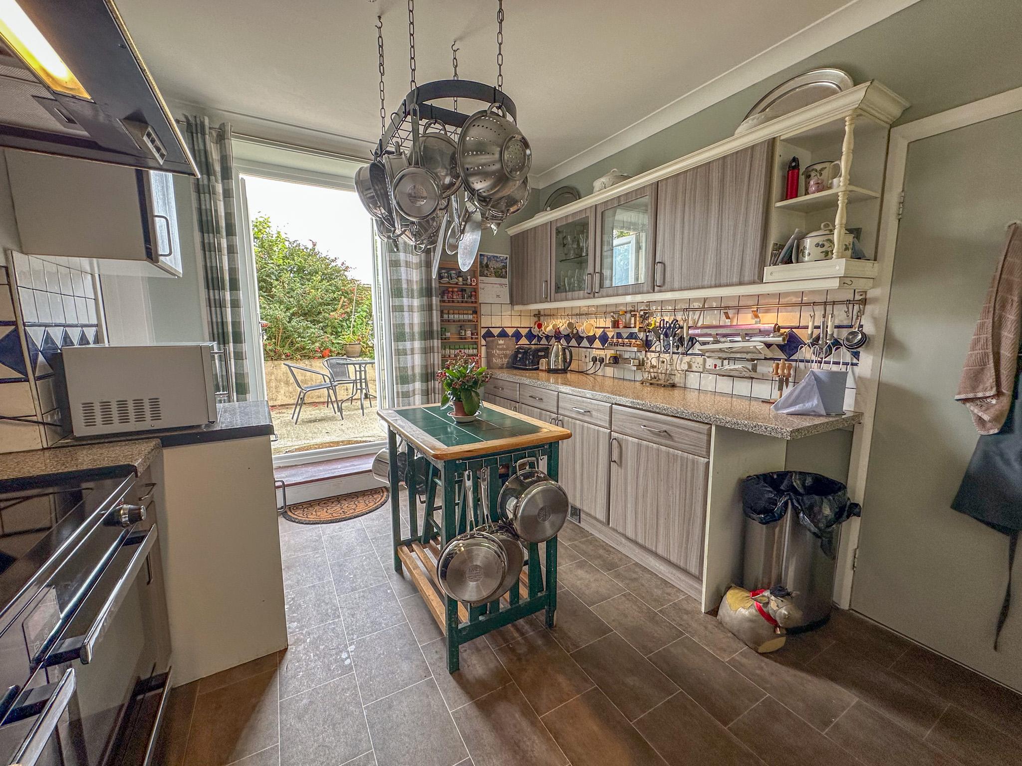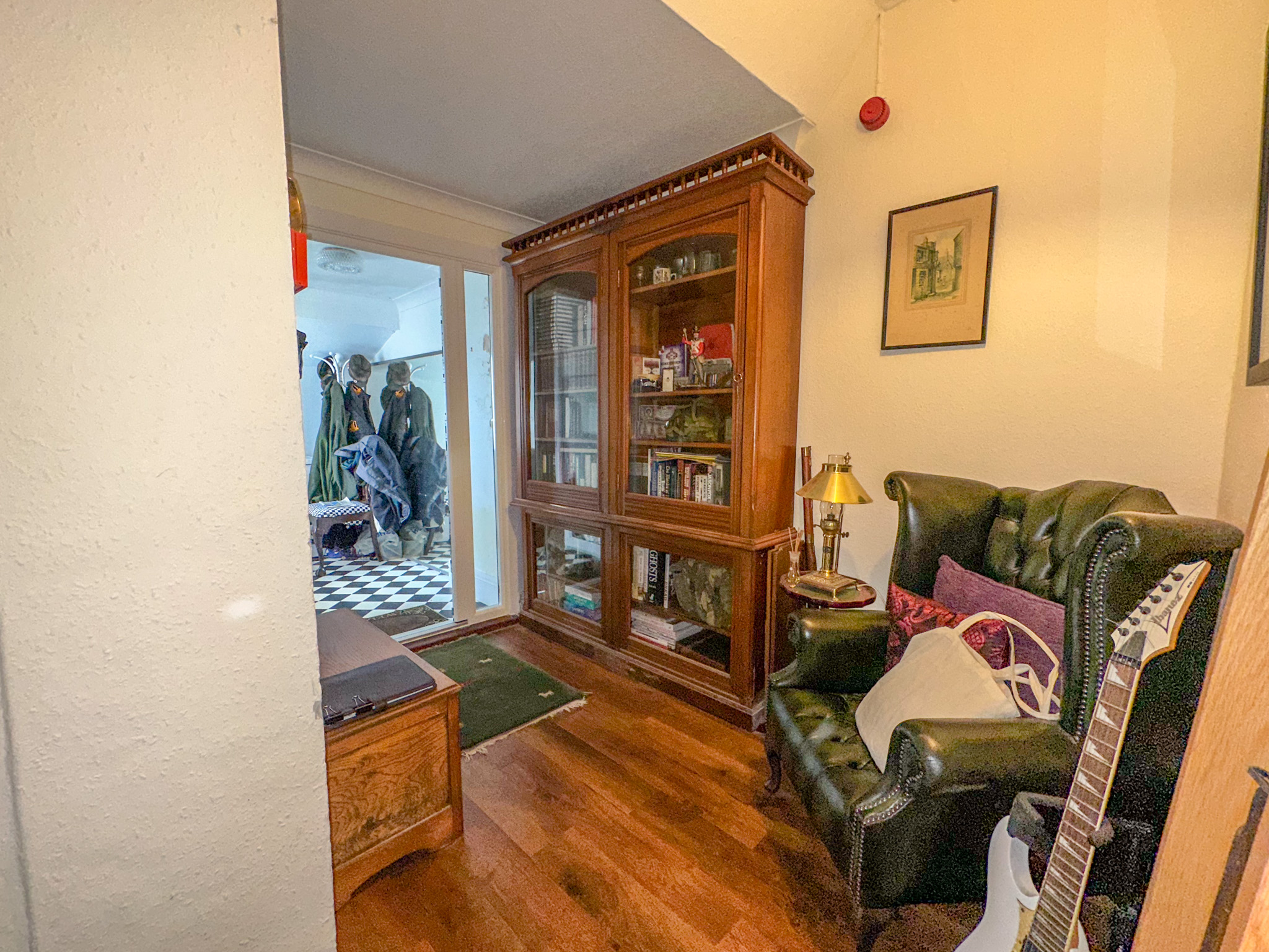 Accessed via steps down to the front door into a large porch with inner door into the hallway with Karndean flooring through to the lounge. Off the hallway are two double bedrooms and an additional reception room that could be used as an occasional bedroom or study, there is a shower room with corner power shower, vanity sink, WC, and heated towel rail. A door leads into the generous dining room/lounge with modern media unit, recess for TV, electric flame effect fire, and back lit display shelving there is plenty of space for a large dining table and chairs making this a fabulous entertaining area. Through a door from the lounge into the kitchen which is fitted with modern base and wall units, tiled splashback, contrasting worksurfaces, integrated fridge, space for a range oven and a dishwasher. French doors lead out into the communal garden giving the owners of the Garden Flat a private place to enjoy the outside. Off the kitchen is a large utility room, plumbed for laundry services also providing additional storage, the back door leads to the rear utilities.