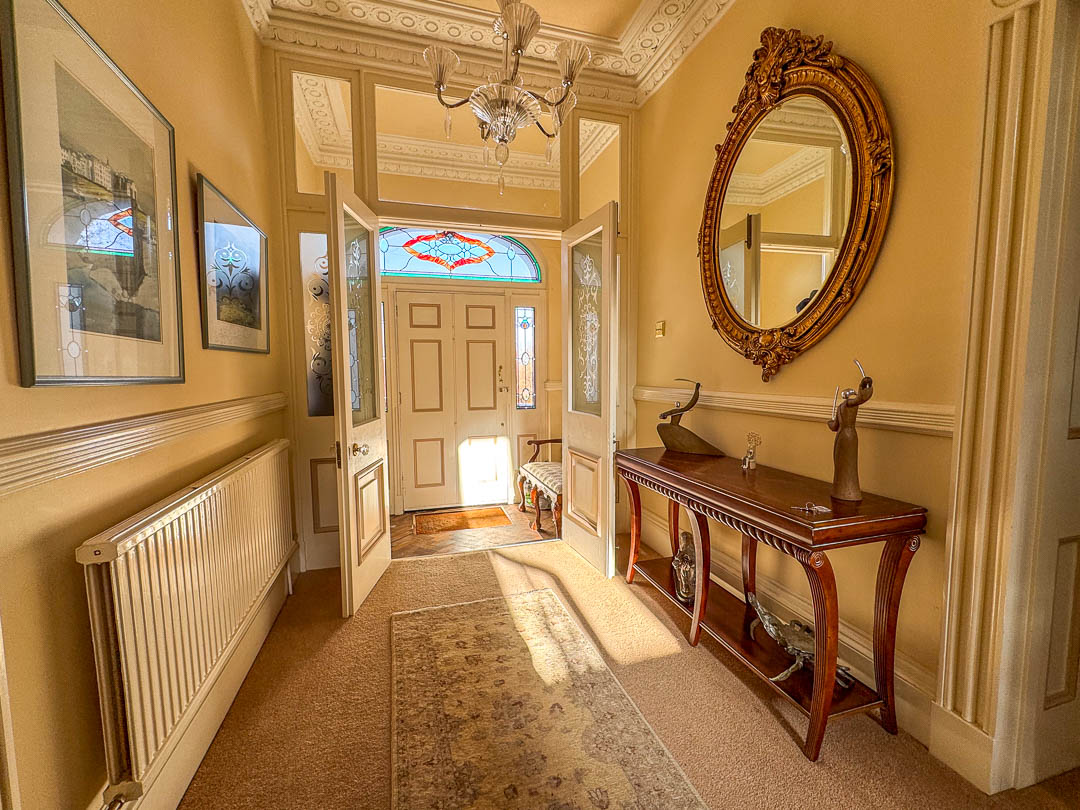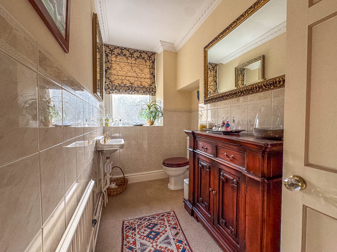 The property is approached via a private gated driveway, with symmetrical lawned gardens to either side, which leads to the front of the property. Upon entering the property there is a porch with a half glazed door leading into the entrance hall. To the right is a spacious dual aspect lounge with a bay fronted window, feature fireplace with ornate carving. From the lounge an opening leads into the snug with views over the rear of the property, this room can also be accessed off the entrance hall. The dining room, is located at the front of the property on the left hand side, which enjoys views over the front gardens from the bay window and a feature fireplace. A cloakroom WC can be accessed off the hall. An ante room provides access to the breakfast kitchen, and also has a door providing access to the rear of the property. The breakfast kitchen is fitted with traditional country style units, three Velux windows provide plenty of natural light in addition to the dual aspect windows. There is a door providing access to the rear of the property and a door with stairs to the basement level. The basement comprises of a 20ft study, wine cellar/storage, boiler room/laundry room and a spacious hall/storage space.