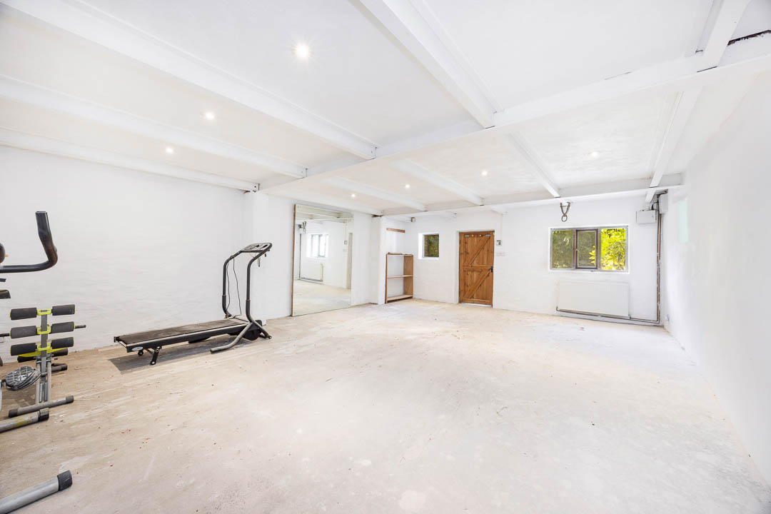 Externally, the property occupies a private and elevated position, with mature shrubs and trees to the property’s boundaries, pond and lawned gardens to the front aspect. In addition to the main dwelling, there is a detached double garage and separate two storey detached former gym and dojo, stable plus a storeroom and a sun drenched terrace.
