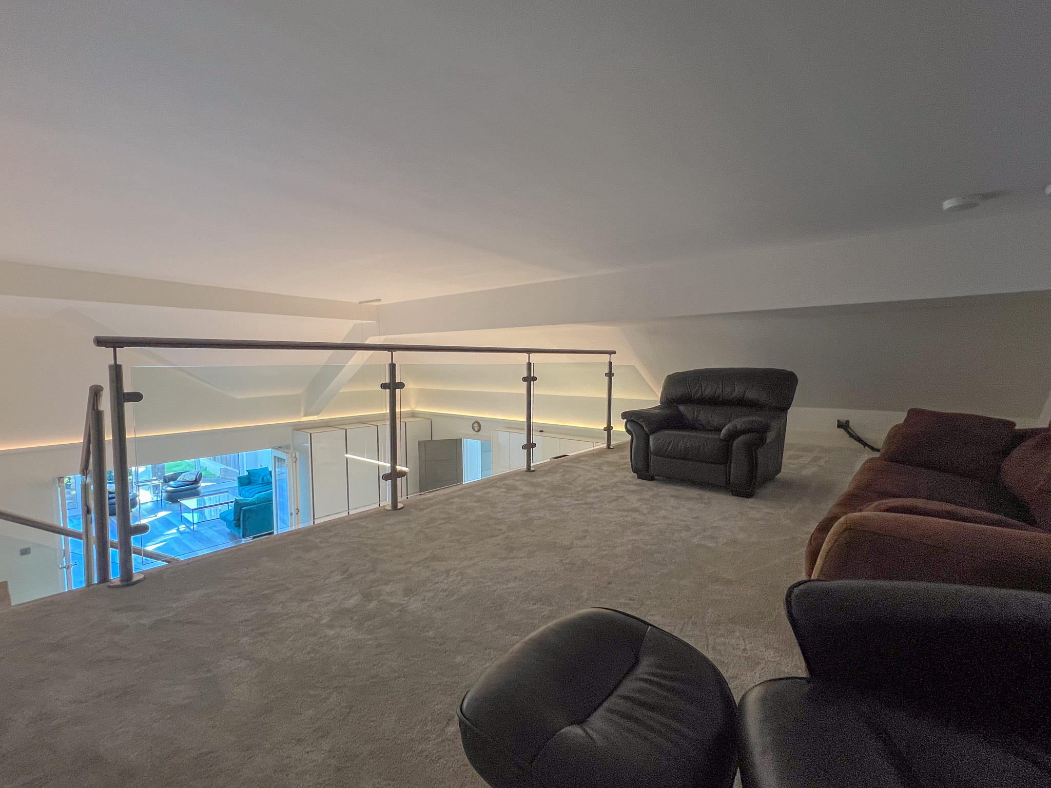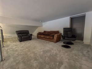 • Spiral staircase leading to mezzanine floor and large walk-in storage area