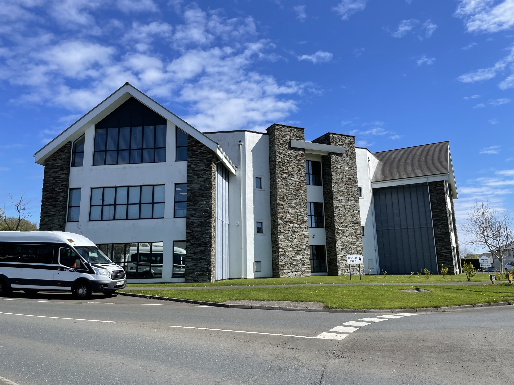 Turning onto the Isle of Man Business Park from the Cooil Road roundabout, continue to the next roundabout and take the second exit, where Island House can be found on the left-hand side.