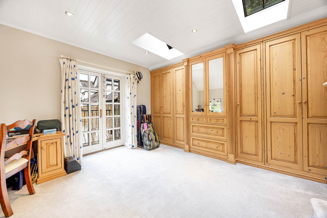 A detached former barn building offers additional space featuring a single garage/ storage room on the ground floor with an Art Studio/Music Room above