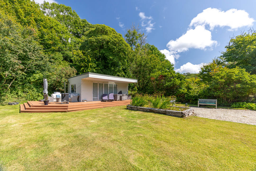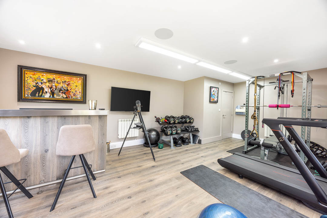 • Impressive Summerhouse/Garden Room and Shower Room/WC with outside decked area, fitted bar and gym area