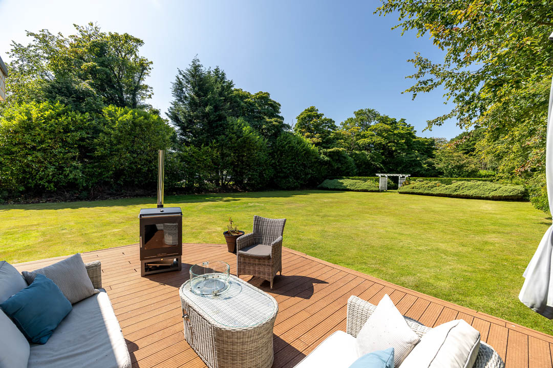 The property sits in easily maintained grounds with a large garden room/ gym with wrap around composite decked area, which leads on to the principal lawns which extend to approx. 1.75 acres. Beyond the lawned area is a private woodland area/secret garden, which leads down and borders the River Neb.