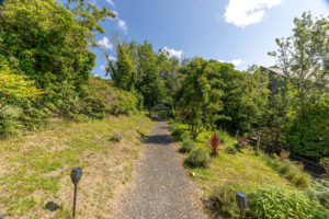Upon entering the property there is a private driveway that descends down to a large off street parking area for several vehicles from which you have easy access to the primary residence, the double garage and self contained annex, plus the detached art studio/ garage store.