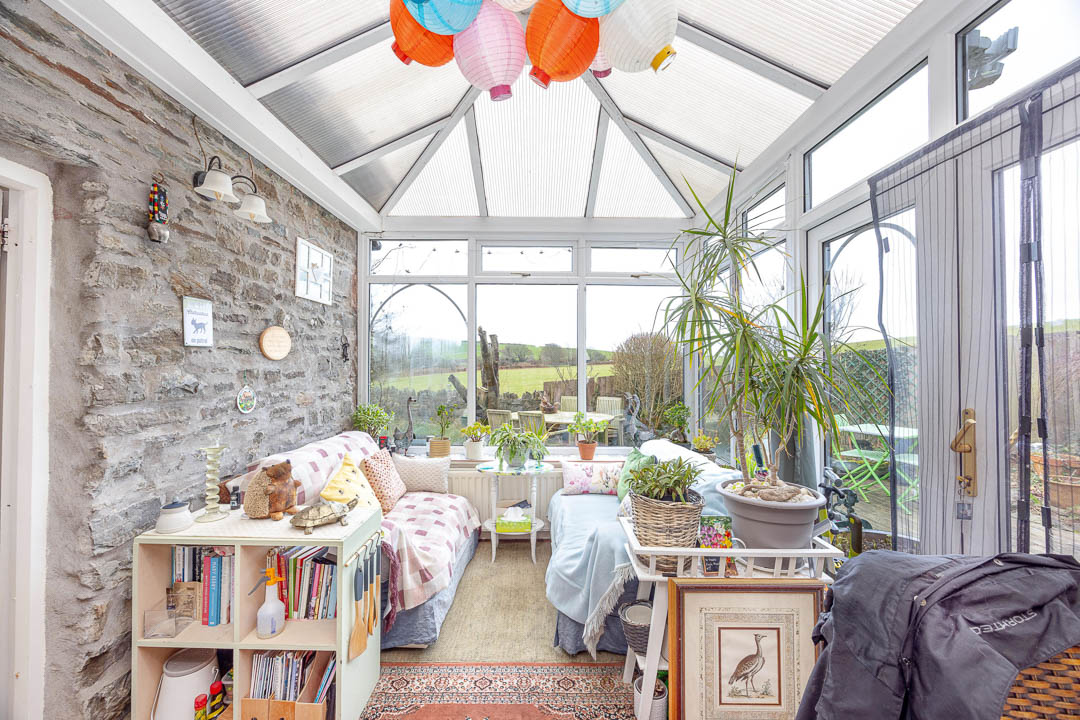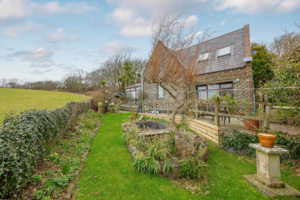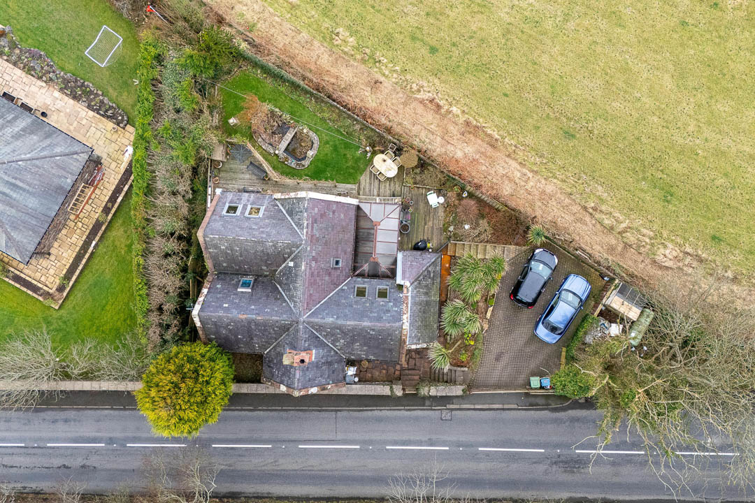 Externally, the property is surrounded by it’s own grounds, with paved footpaths to the side and front of the property. The gardens at the back are south facing with stunning rural views, and a mixture of lawn and mature shrub borders. The opposite side of the driveway there is a timber shed and a triangular copse of wooded woodland.