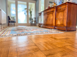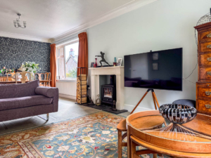 Park View benefits from many original features such as parquet flooring, feature fireplaces and dual aspect rooms offering plenty of natural light. Upon entering the property there is an entrance porch which leads through to a spacious entrance hall with parquet flooring throughout. To the front of the property, accessed off the entrance hall, is a dual aspect lounge/diner with a feature log burner, serving hatch through to the kitchen and views across Nobles Park. Kitchen situated to the rear and fitted with a range of contemporary wall, base and drawer units with marble effect worktops, built in shelving, integrated appliances, picture window looking onto the rear garden and a sliding door that takes you through to the utility area which provides access to the gardens and stairs to the lower ground floor. The large home office/study is situated to the front of the property and accessed off the entrance hall, with a large picture window overlooking Nobles Park. The family bathroom, situated on the ground floor, is fitted with a double ended bath, walk in shower cubicle, wash hand basin and WC. Lastly, bedroom 5 is situated on the ground floor overlooking the gardens and benefits from a built in wardrobe under the stairs.