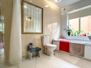 On the first floor is a good size landing. providing access to four further bedrooms. Bedroom 1 and 2 are both large en-suite double bedrooms. Bedroom 1 is situated to the front of the house with fantastic views across the park and a large en-suite fitted with a walk-in shower cubicle, wash hand basin and WC. Bedroom 2 looks across the rear garden with a spacious en-suite fitted with a walk in shower cubicle, wash hand basin and WC. Bedroom 3 and 4 are also off the landing. Bedroom 3 has a fitted wardrobe and both benefit from a side aspect.