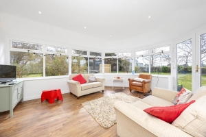 To the front of the property there is a covered porch with a door leading into a bright and spacious entrance with a staircase up to the first floor and understairs W.C. The original parquet flooring extends from the hallway to the living space. The formal lounge has dual aspect double glazed windows situated to the front and side of the property, log burner and a set of double doors that lead into the cinema room which also benefits from the original period flooring. From the cinema room there is a set of bi-fold doors taking you into the sunroom situated at the back of the house, which benefits from triple aspect double glazed windows and a set of French patio doors that take you out to the gardens.