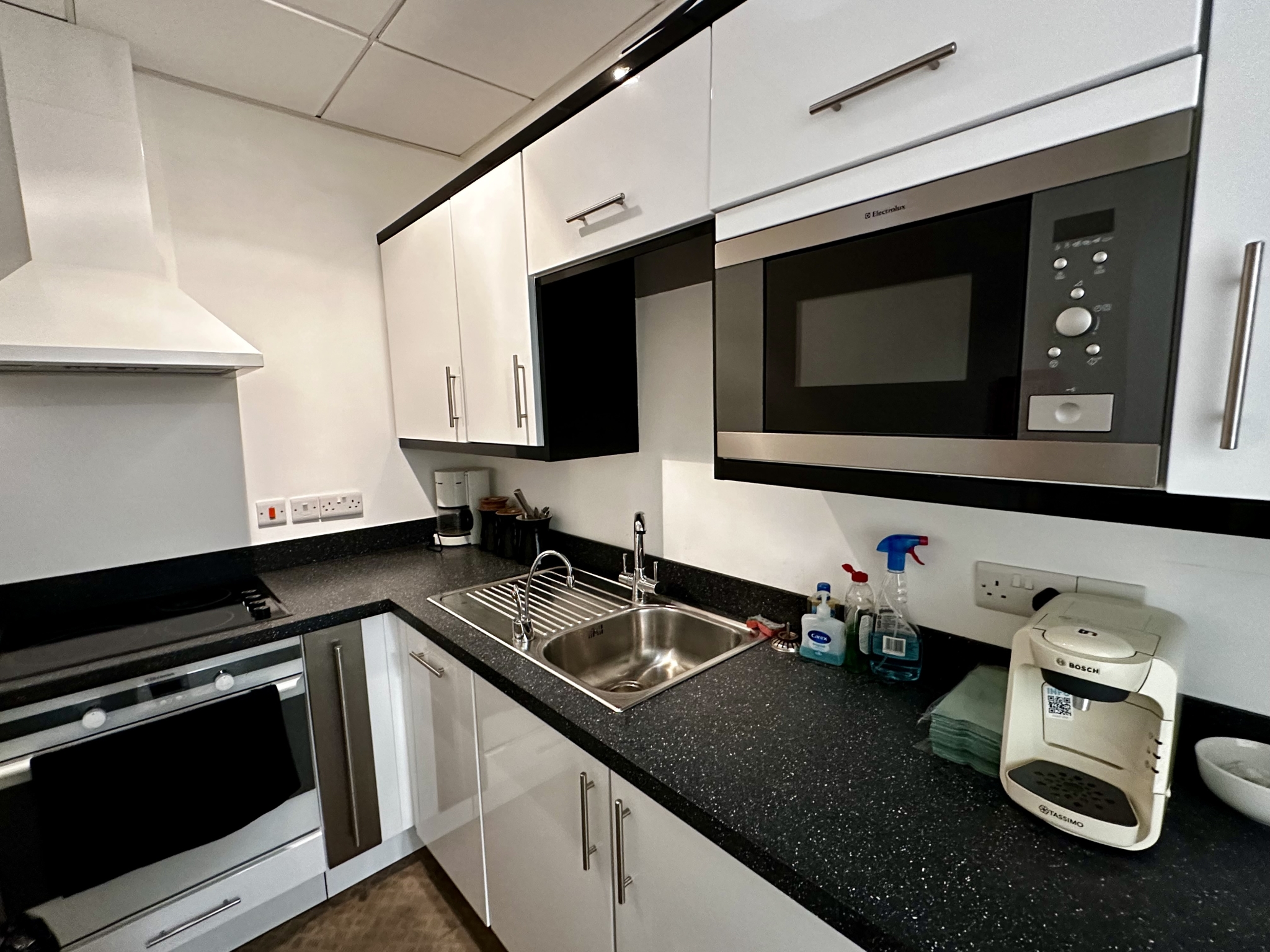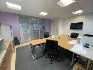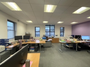• Large open plan office approx. 33’6” x 23’7” incorporating a walk-in secure room with air conditioning.