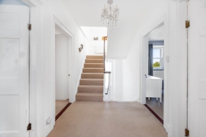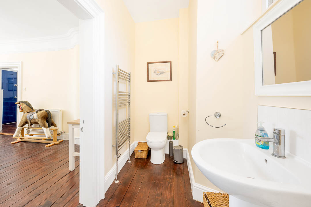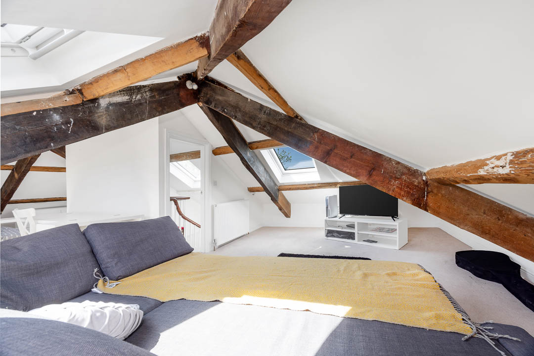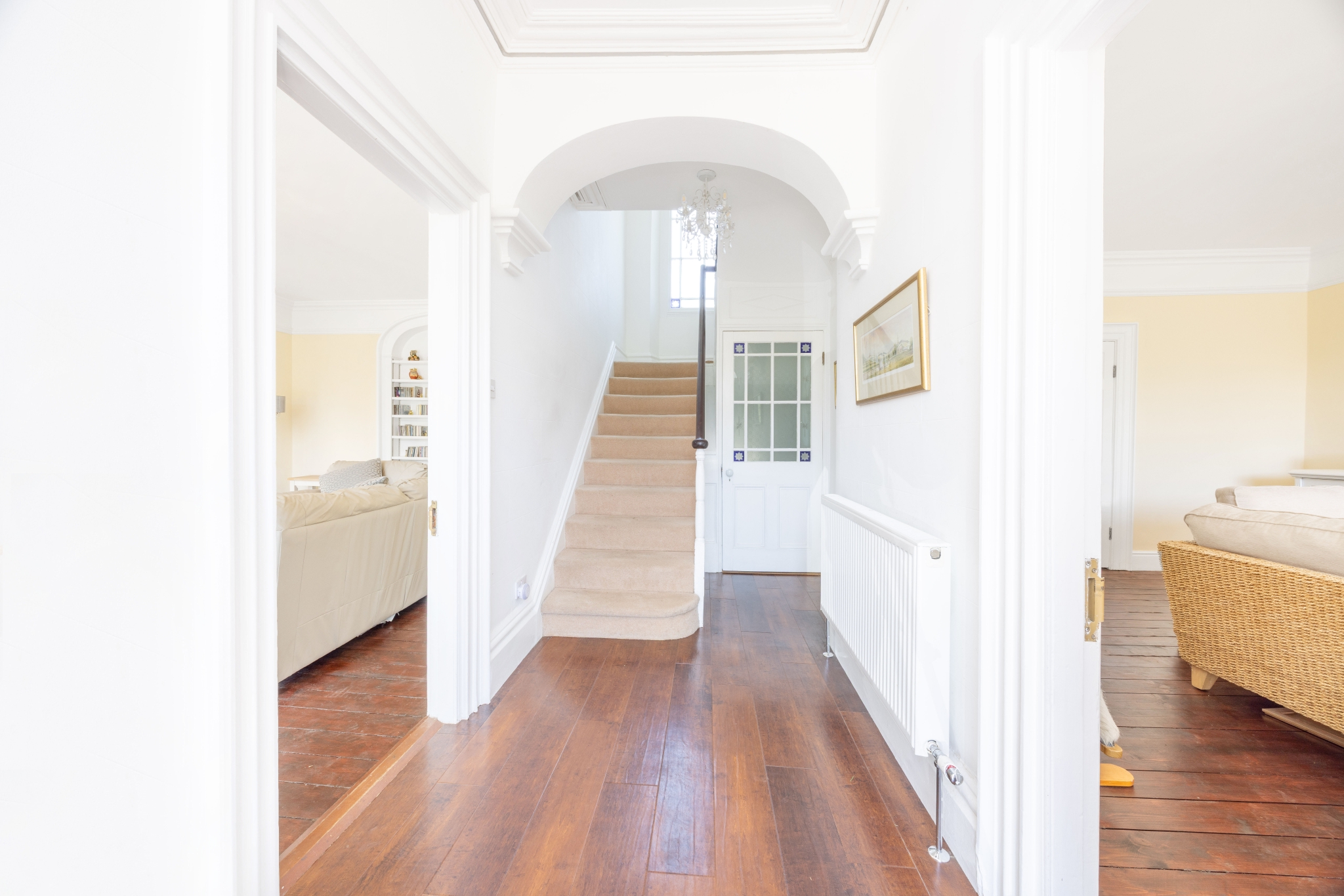 On the first floor of the house are four good sized double bedrooms, the two bedrooms are dual aspect with stunning rural views. The family bathroom is situated to the front of the property and has a double ended bath, corner shower cubicle, wash hand basin and WC. From the first floor landing stairs lead up to the attic room which has exposed beams offering plenty of character. There are five Velux windows in the room, three of which are to the front aspect and two to rear with sea views. This room is very versatile and could be used as an additional bedroom or a potential study/playroom.