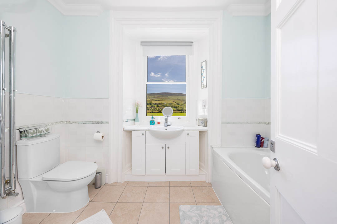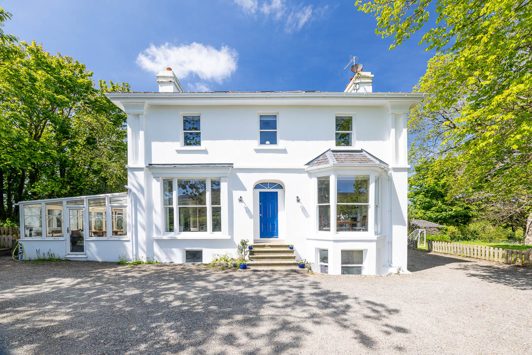 Black Grace Cowley are delighted to offer Rhencullen House to the market. This stunning double fronted Georgian property sits in an elevated position with spectacular rural views and partial sea views to the rear. The property has a gated driveway leading up to the front of the house where there is off street parking for several vehicles. There are steps up to the property’s entrance door which provides access into the hallway. The hallway has carpeted stairs leading to both the lower ground floor and first floor. A door leads into a formal lounge with full height sash picture window to the front aspect, feature log burner and a door leading into a fantastic sized conservatory on the western side of the property. The conservatory has a uPVC perspex roof and a set of French patio doors giving access to one part of the property’s grounds and an individual door giving access back out onto the driveway. Also off the entrance hall is a door into the formal dining room/guest bedroom, with a bay fronted window which enjoys spectacular views and wooden floors. There is access into the shower room which has a shower cubicle, wash hand basin and WC.