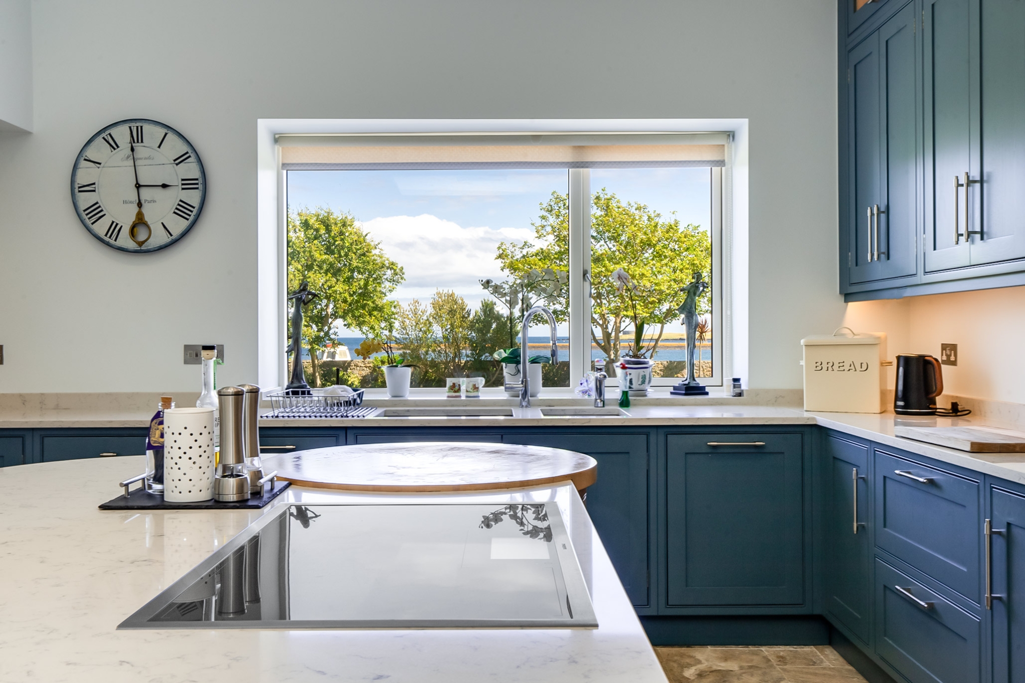 As you approach the property, an imposing entrance leads to a paved driveway providing excellent parking facilities along with access to the integral triple garage and additional single garage/workshop. The beautiful front and rear gardens are softened by mature planting, creating a serene and picturesque environment. The gardens take full advantage of the stunning surrounding views, especially the feature patio area, which is perfect for outdoor entertaining or simply relaxing while enjoying the breath-taking scenery. Beautifully landscaped, these gardens provide a tranquil retreat with manicured lawns, flowering shrubs, and well-placed seating areas to savour the coastal ambiance. Outside there is also a stone garden store.