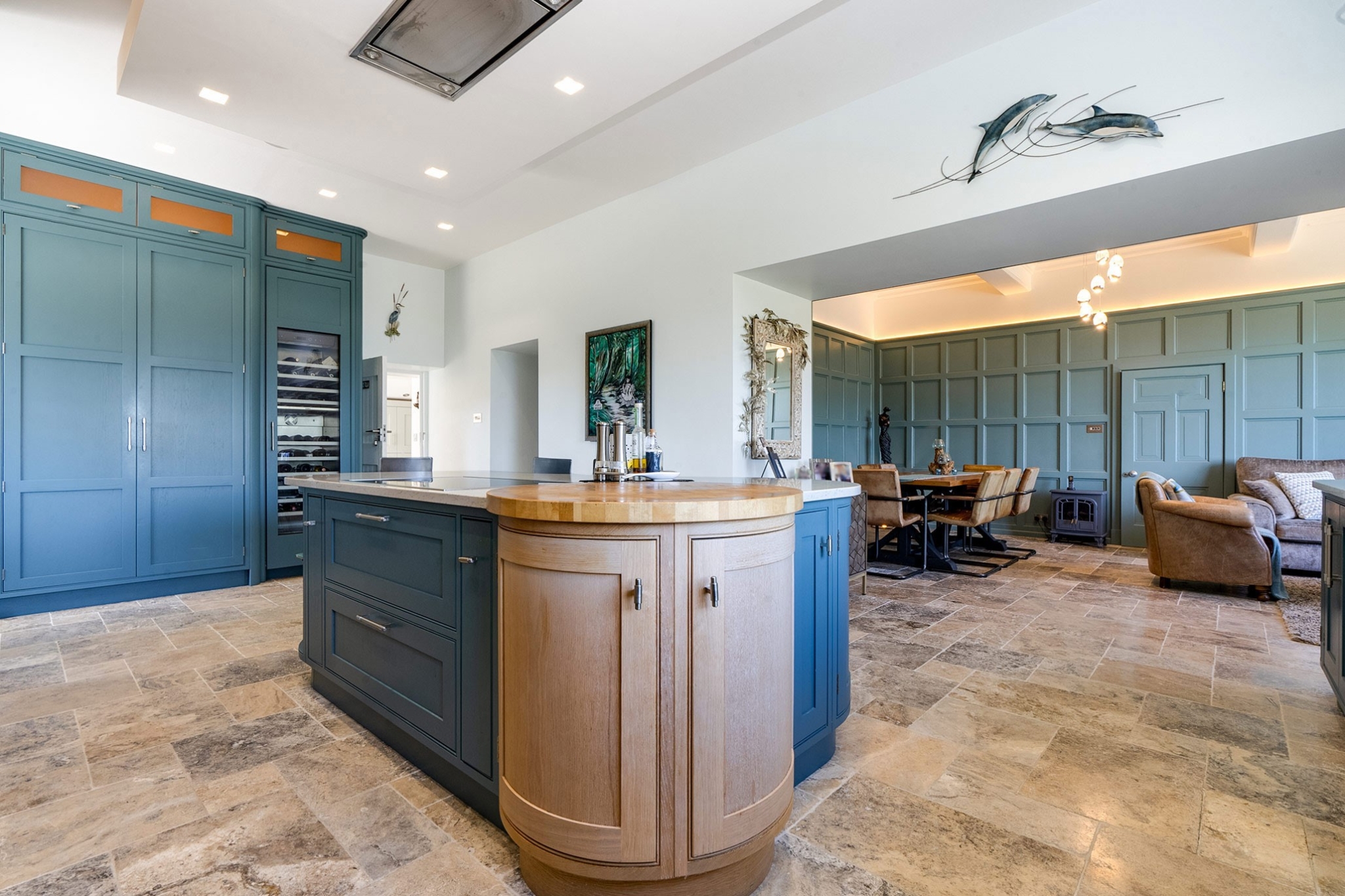 The heart of the home is the luxury dining kitchen fitted with high-end appliances. Open to the dining kitchen is the family/dining area offering ideal space for day to day living and both casual family meals and formal dining. Adjacent to the kitchen is a large utility room, providing additional storage and functionality. The kitchen seamlessly blends traditional charm with modern convenience, featuring bespoke cabinetry and a large central island, making it perfect for culinary enthusiasts.