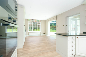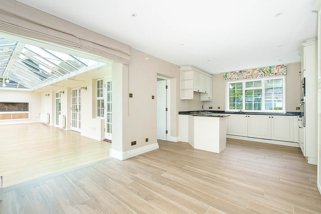 A flexible ground floor suite, previously used as a guest annex, offers excellent multigenerational potential and includes a dressing area and en-suite wet room. To the rear, an impressive uPVC conservatory spans the width of the annex, featuring a built-in stove and sliding doors opening onto the private garden.