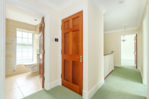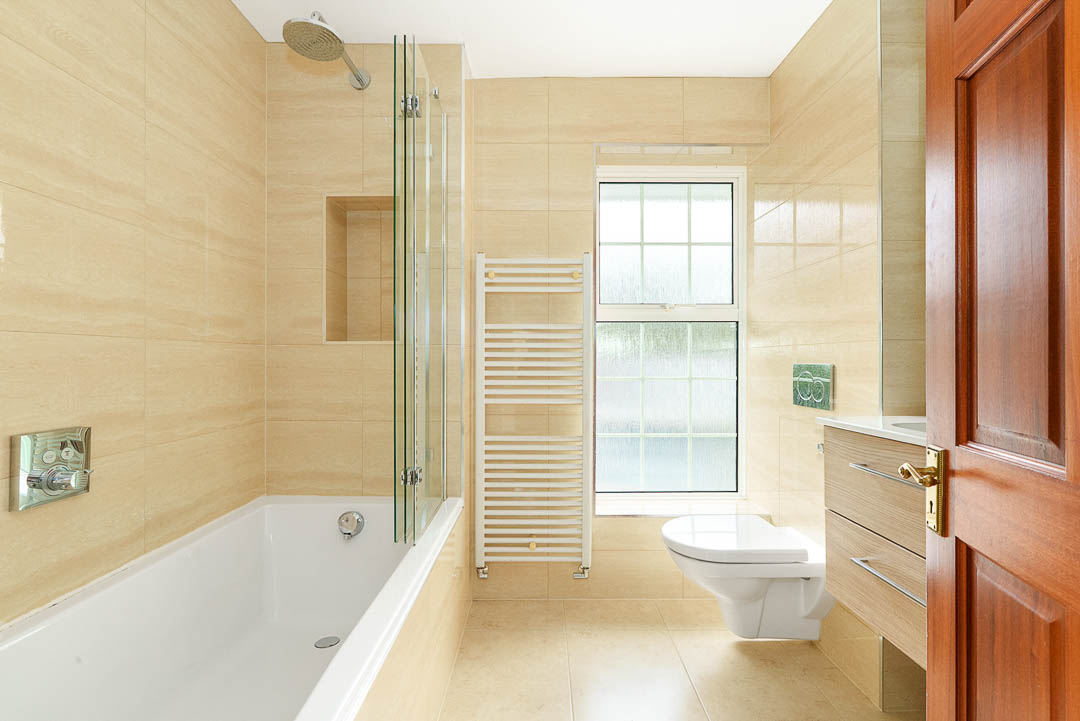 Upstairs are four well-proportioned bedrooms. The principal bedroom enjoys fitted wardrobes, an en-suite bathroom, access to a rear balcony and dual aspect uPVC double glazed windows. Bedrooms 2 and 3 also benefit from balcony access, while the family bathroom is fitted with a contemporary suite.