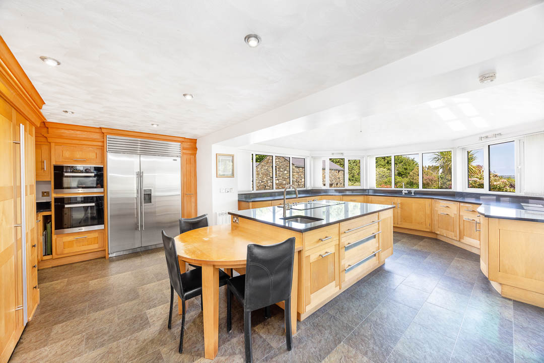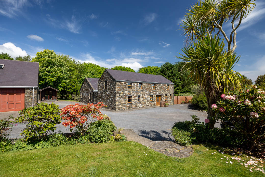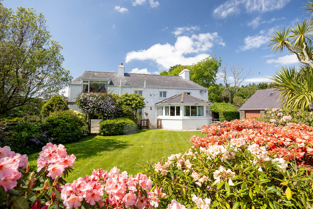 The main house provides spacious and light-filled accommodation throughout, with most rooms enjoying dual-aspect views. A full-height entrance hall creates a welcoming first impression, and leads to three reception rooms, including a living room and study with direct access to the private, walled ‘Time Garden’.