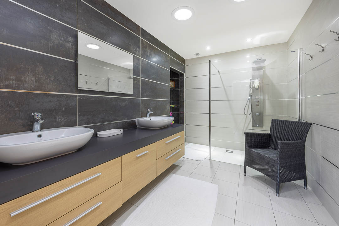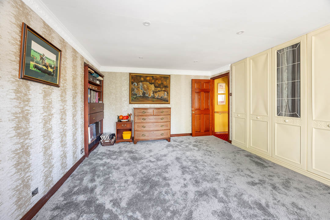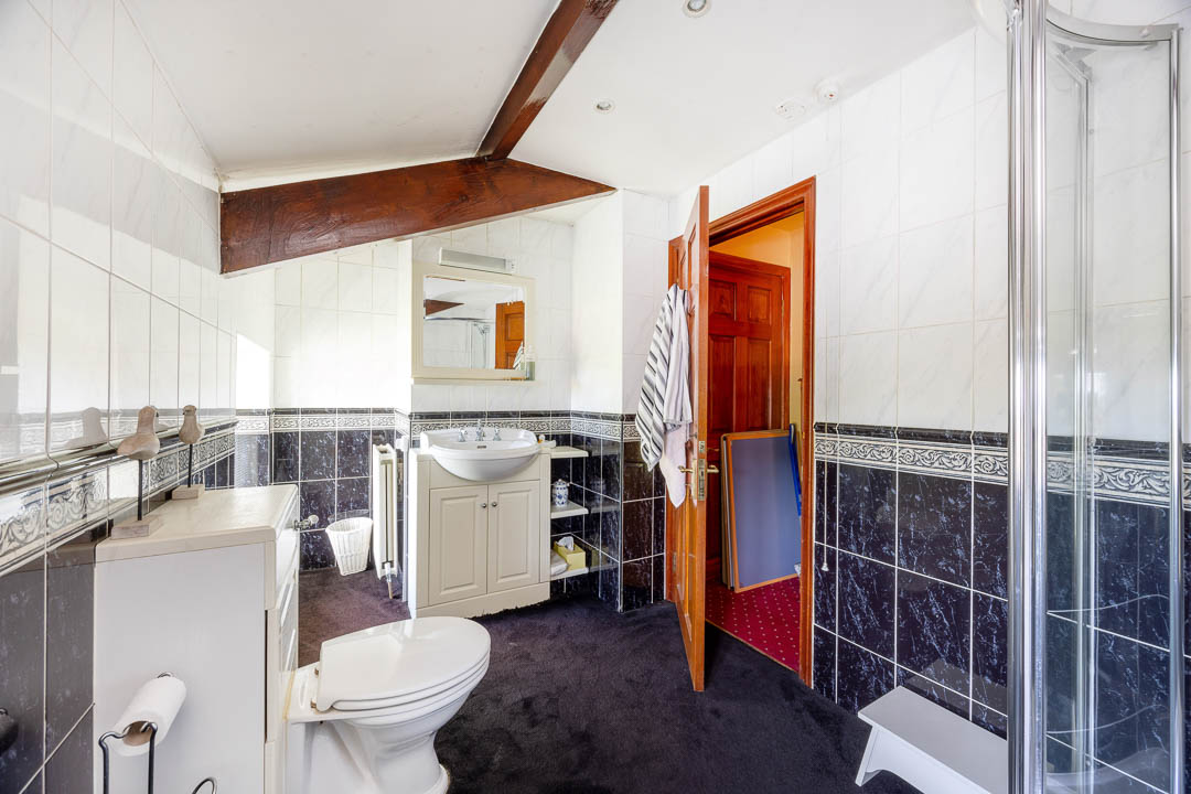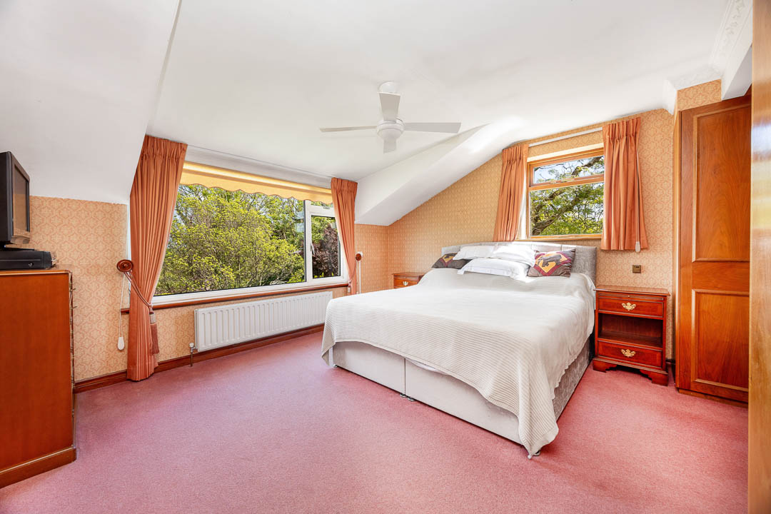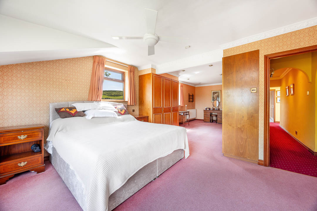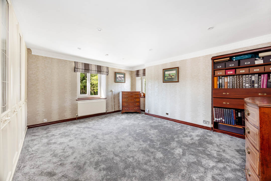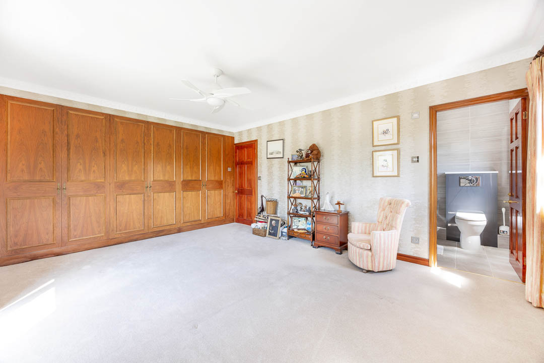 Upstairs, there are four principal bedrooms, all with bespoke fitted wardrobes. The master bedroom includes a generous dressing room and a modern ‘wet room’ style en-suite bathroom. The house also benefits from double glazing and oil-fired central heating.