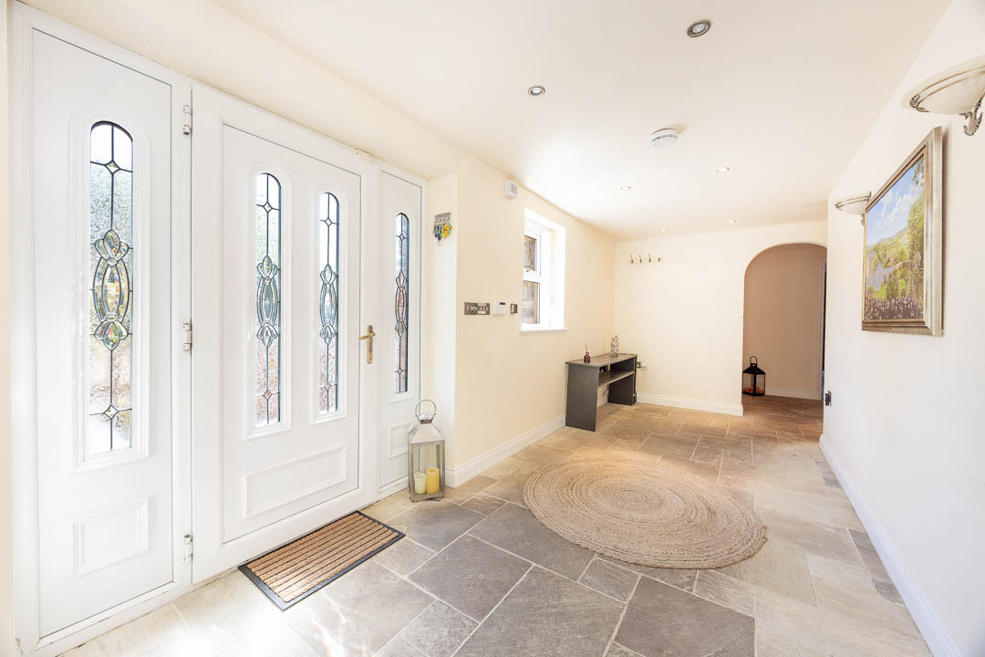 Set at the end of a long private driveway off Church Road, this detached farmhouse sits within approximately 70 acres of ring-fenced paddock land and offers a comfortable, well-appointed family home with a range of equestrian and leisure facilities.