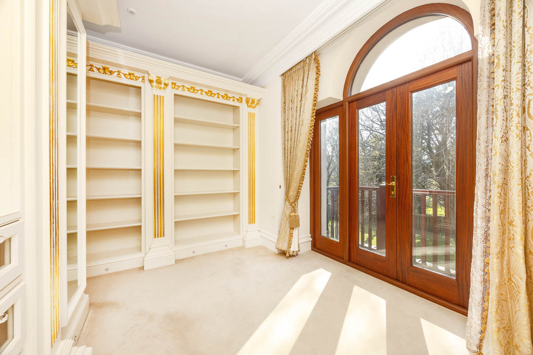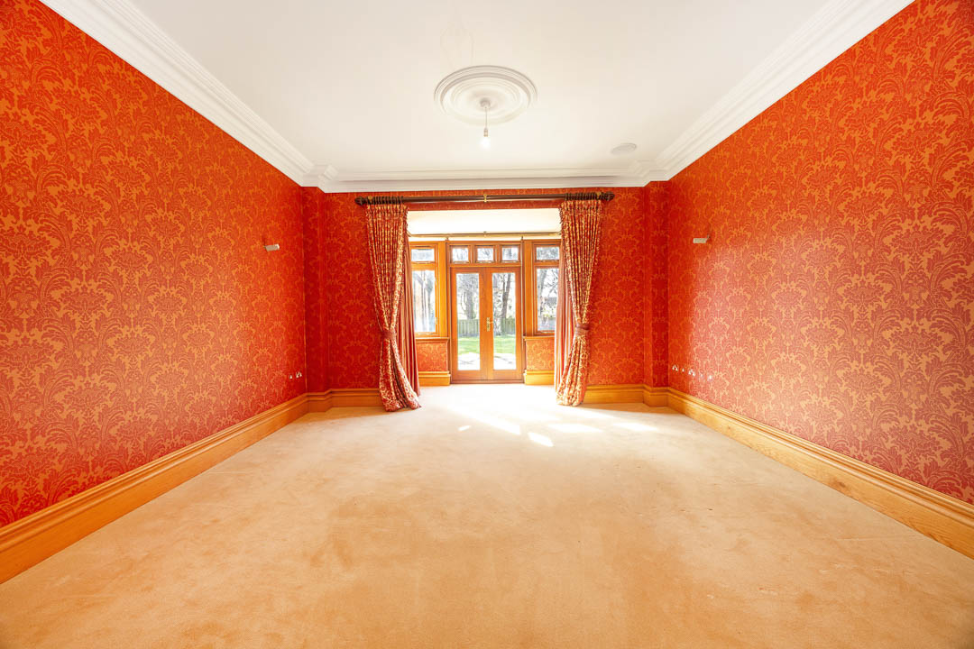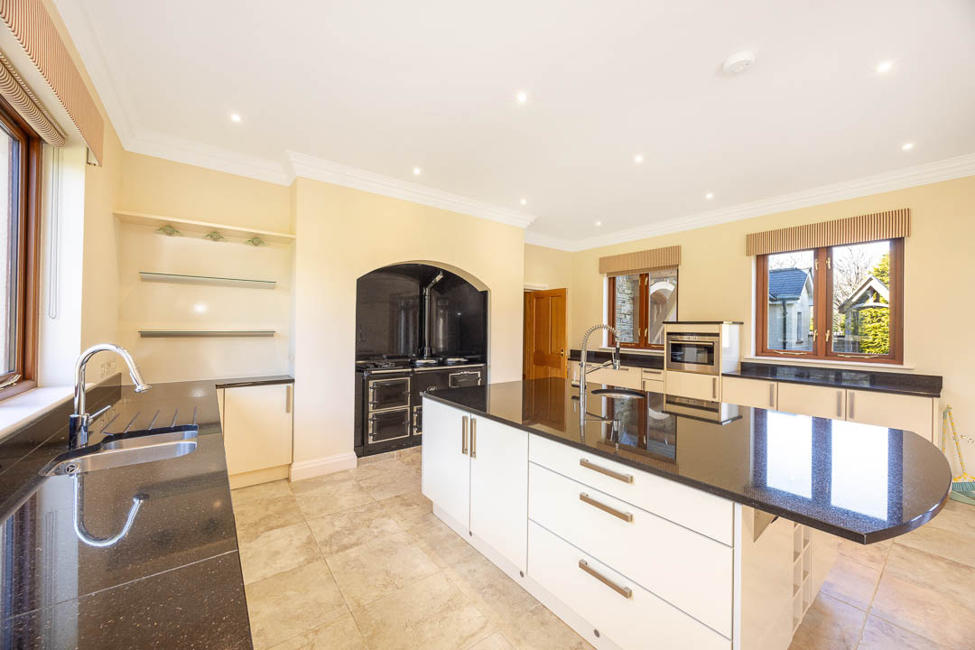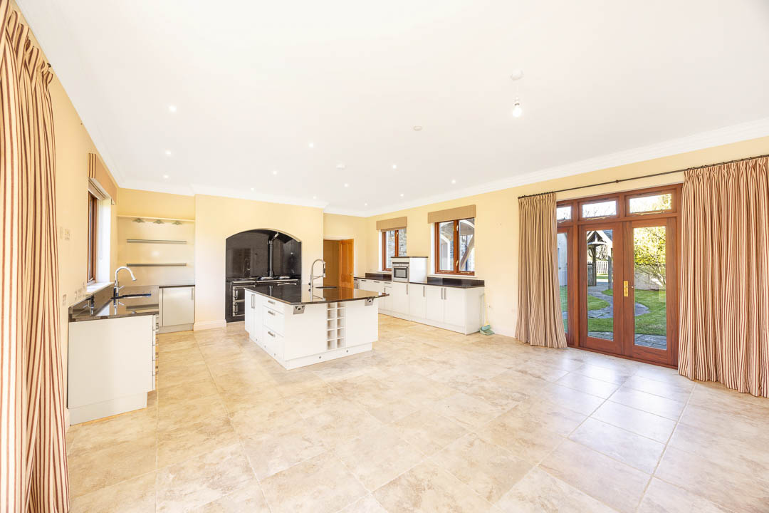 Entering the property through the porch with a double oak front door that leads into a spacious reception hall, which leads into an inner hall leading to the main reception rooms. Off the inner hall is the drawing room which is an elegant triple aspect reception room with a feature French limestone fireplace and hearth with a fitted gas flame fire. Three sets of double doors lead into the garden and terrace. A spacious formal dining room with double doors leading out to the terrace and garden can also be accessed off the inner hall. The kitchen breakfast room is a wonderful open living space fitted with an extensive range of high gloss base units with granite worktops incorporating a stainless steel sink unit with waste disposal unit. Matching granite topped island with a stainless steel preparation sink and waste disposal unit, cupboards, drawers and wine rack. Matching granite backed recess housing the gas fired four oven AGA with twin hotplates and two gas burners. Built in Siemens microwave/conventional oven. Integrated Miele dishwasher, stainless steel American style Fridge Freezer and tiled floors. Down lit glass display shelving. Two sets of double doors, one to the terrace and garden and the other to the courtyard. Double doors lead into the snug/family room. The snug/family room has a feature brushed stainless steel fireplace with gas flame fire and granite hearth. Bespoke cabinets to the chimney recess with display shelves and cupboards, one housing the Bose surround sound control centre. Lastly, off the inner hall is the music room with has double doors leading out to the decked veranda. Off the rear hall is a cloakroom WC and cloaks cupboard. The inner lobby has a walk in food temperature-controlled pantry/wine store with a corner refrigerator and cupboards, tiled floor. The utility room is fitted with base, wall and drawer units with a laminate work top, under counter freezer and stainless steel sink unit, tiled floors. Boiler Room housing the oil fired boiler, door to the courtyard and three car garage.