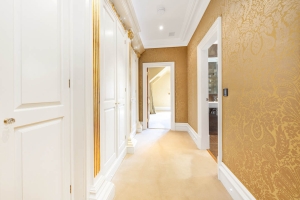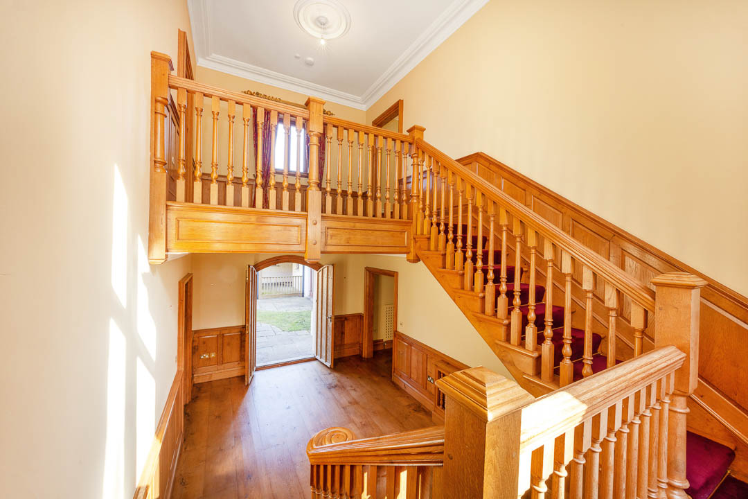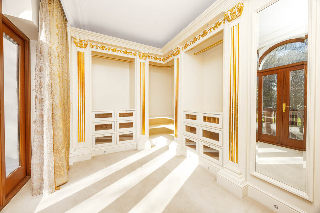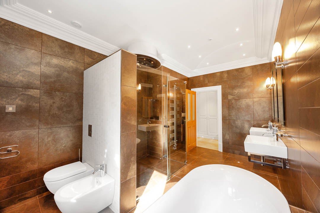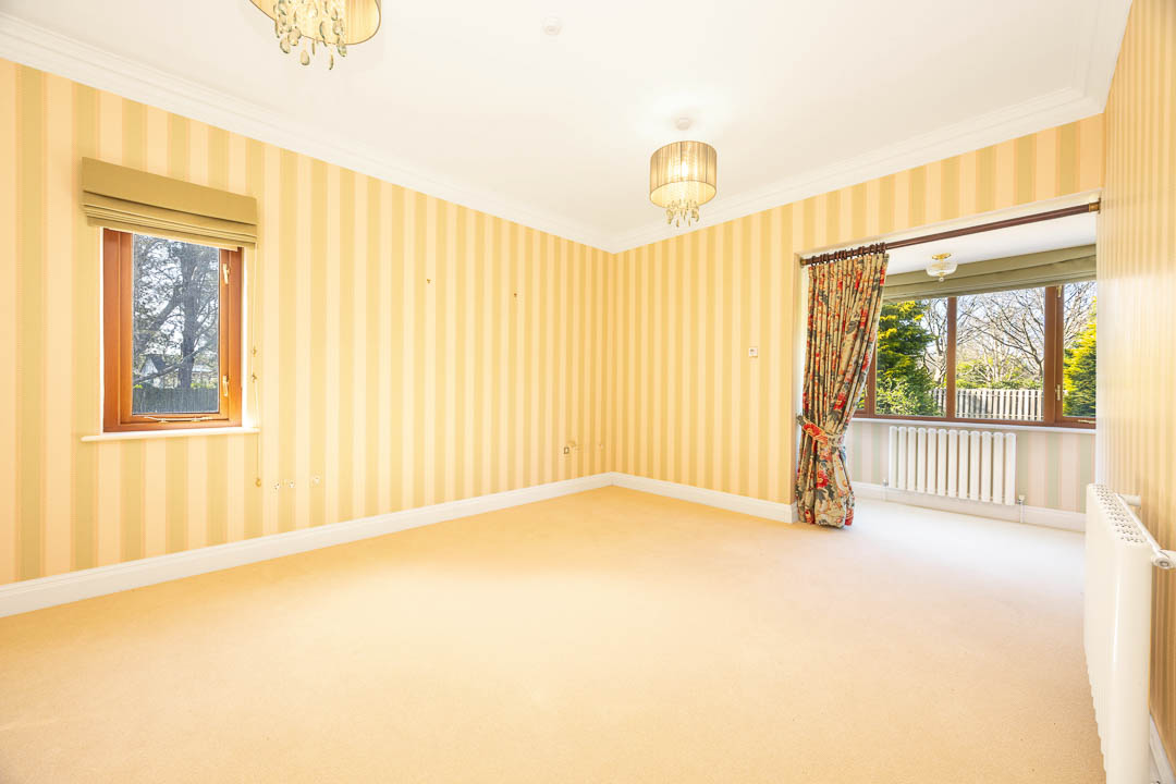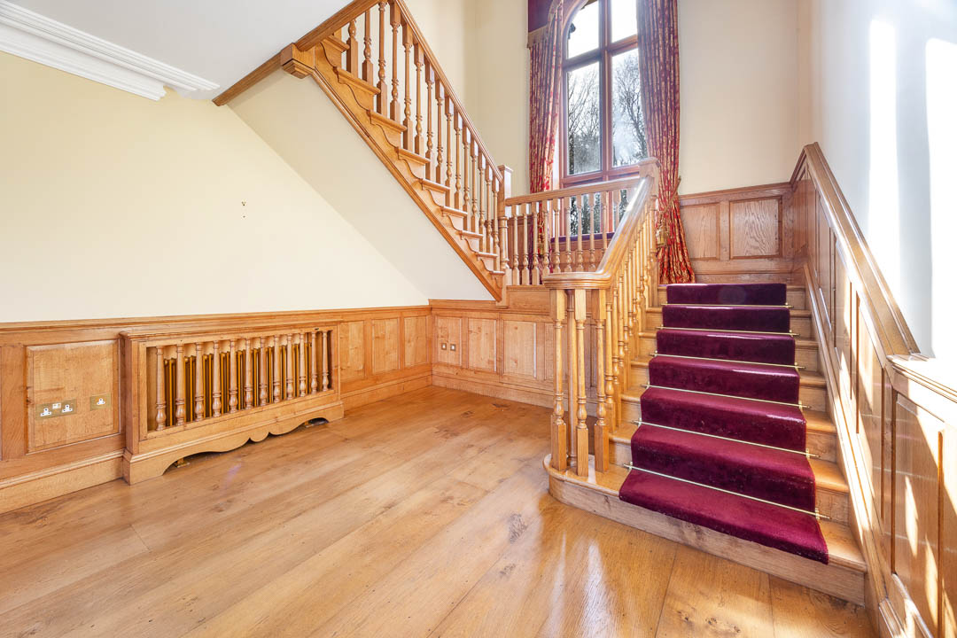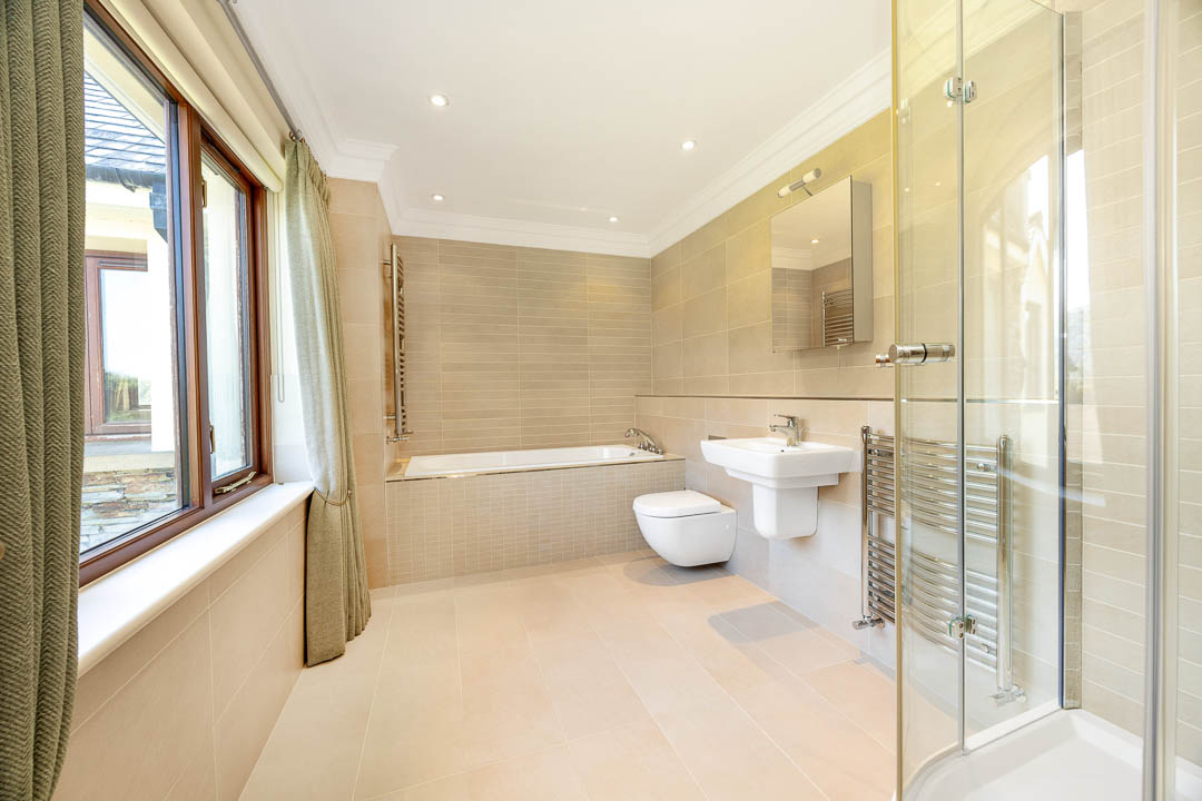 Off the main hall is bedroom 4, a dual aspect double bedroom with an en-suite bathroom which is fitted with a three piece suite comprising of a tiled bath, wash hand basin set on hardwood cabinetry, WC and wet room area with Hansgrohe ‘deluge’ shower and hand spray, fully tiled walls and floor. Taking the stairs to the first floor, there is a large landing with oak panelled walls, large linen storage with twin Megaflow water cylinders and loft access. Off the landing is the master bedroom suite with dedicated zoned lighting, Ante room with fabric padded walls, sensor-activated lighting and custom made wardrobes. Leading through into the bedroom which is a generous triple aspect room with attractive rural views. The en-suite bathroom is appointed with a luxurious suite comprising twin Villeroy and Boch wash hand basin, WC and bidet. Villeroy and Boch fire and ice tiled walls and floor, matching tiled bath, glass enclosed wet room with ‘Rain Dance’ variable jet deluge shower head, built in cabinets and floor lighting. The master bedroom suite also benefits from a dressing room which is fully lined with cupboards, drawer, open shelving and hanging space, sensor activated lighting and door to balcony. Bedroom 2 is a spacious dual aspect double room with a dressing room with fitted wardrobes and an en-suite bathroom fitted with a four piece suite comprising tiled bath, glass corner shower enclosure with deluge shower head and hand spray, Villeroy and Boch wash hand basin and WC. Fully tiled walls and floor. Bedroom 3 is another great size bedroom with a dressing room fitted with a range of wardrobes and an en-suite bathroom fitted with a four piece suite comprising tiled bath, glass shower enclosure with deluge shower head, wash hand basin and WC, half tiled walls and tiled floor.