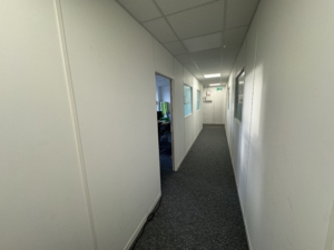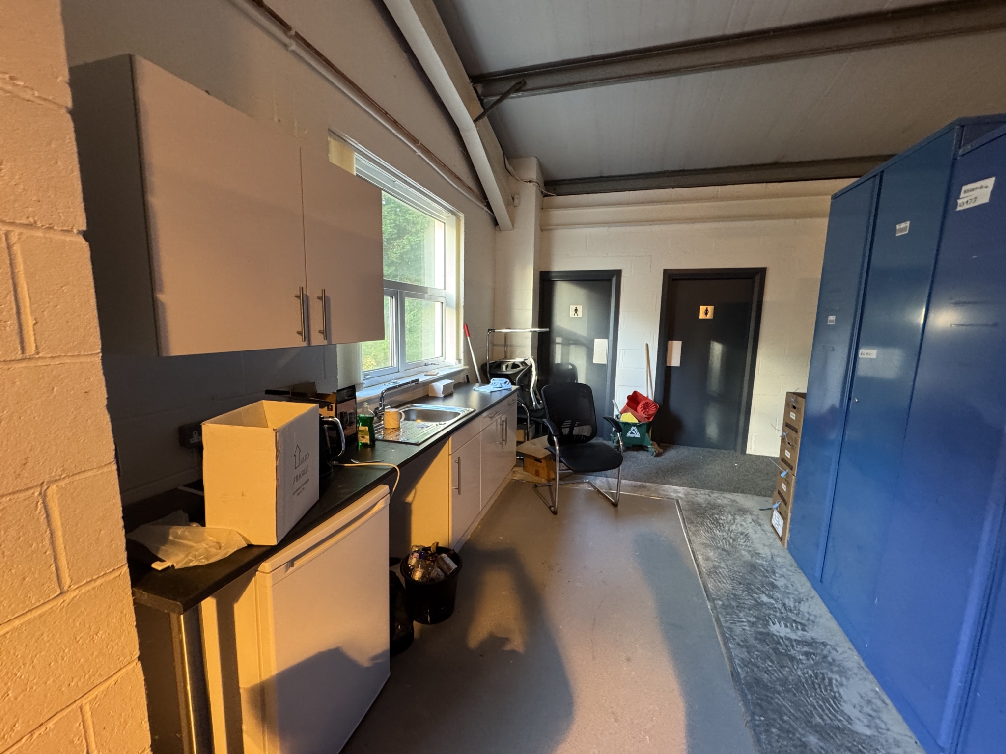 Steel portal frame building with breeze block walls which have been externally rendered and painted. Profile sheet metal roof, solid concrete floor and stud partitioned throughout. LEASE TERMS